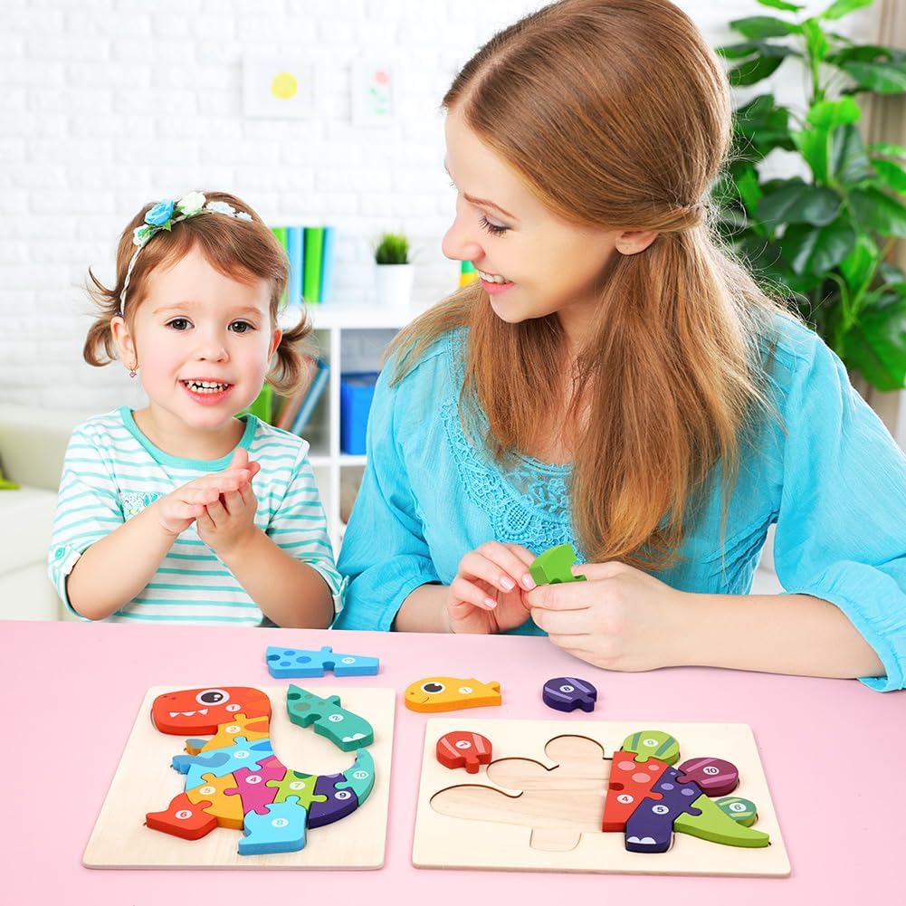 【Sicuro per il tuo bambino】Ha superato la certificazione CE/EN 71 ed è conforme agli standard di sicurezza dei giocattoli e ogni puzzle è stato rigorosamente ispezionato. Questi puzzle in legno sono realizzati in legno naturale, ben realizzati, tagliati con precisione, con bordi lisci e lucidati, senza sbavature e non danneggeranno la pelle dei bambini. Sono durevoli e non si rompono facilmente. 【Giocattoli educativi in legno】Riceverai due pezzi di puzzle in legno con motivi di dinosauri. Colori vivaci e vivaci e forme e disegni di animali carini e divertenti attirano l'attenzione dei bambini. I puzzle con cornici di animali aiutano ad allenare il riconoscimento di forme e colori da parte dei bambini. 【Giocattoli Educativi Montessori】Con forme interessanti, immagini realistiche di animali e bellissimi colori vivaci, i nostri puzzle in legno attireranno i tuoi bambini e fungeranno da giocattoli educativi per neonati e bambini piccoli. Sviluppa la logica e la coordinazione occhio-mano attraverso semplici giochi di attività. 【Facile da trasportare】Ogni puzzle per bambini è spesso e abbastanza grande, di dimensioni ragionevoli per essere afferrato dai bambini e i mignoli possono facilmente afferrarlo e posizionarlo sul puzzle. Squisito e compatto, può essere riposto nella nostra borsa di flanella per un facile trasporto, permettendo ai bambini di divertirsi in movimento! 【Regalo perfetto】Il nostro giocattolo in legno divertente ed educativo è il puzzle in legno perfetto per bambini dai 2 anni in su. Sono anche i migliori regali di Natale o di compleanno per ragazzi e ragazze. È un regalo divertente, stravagante e giocoso che sarà apprezzato per gli anni a venire. Sorprendi il tuo piccolo con questo set puzzle in legno con animali!