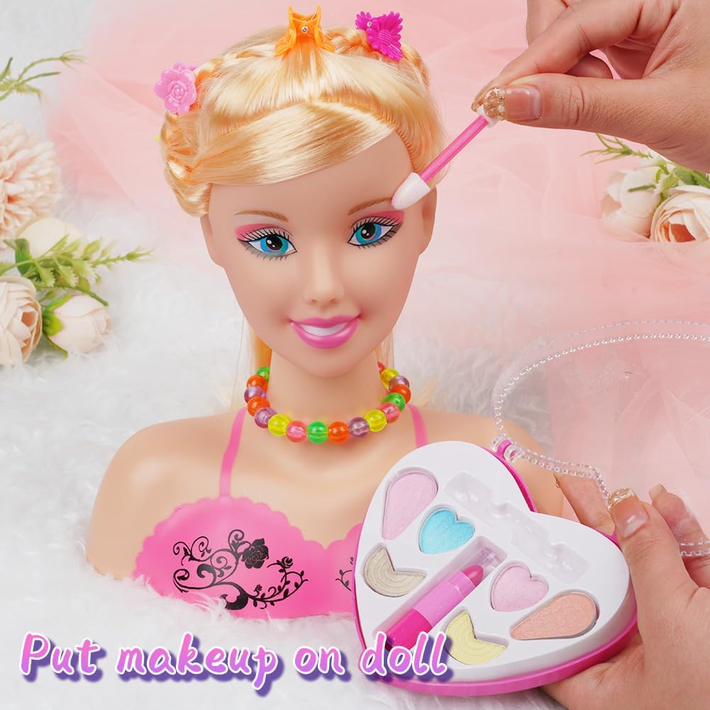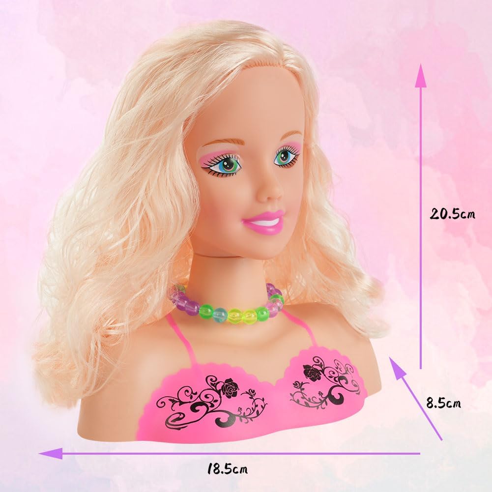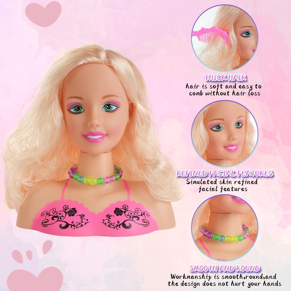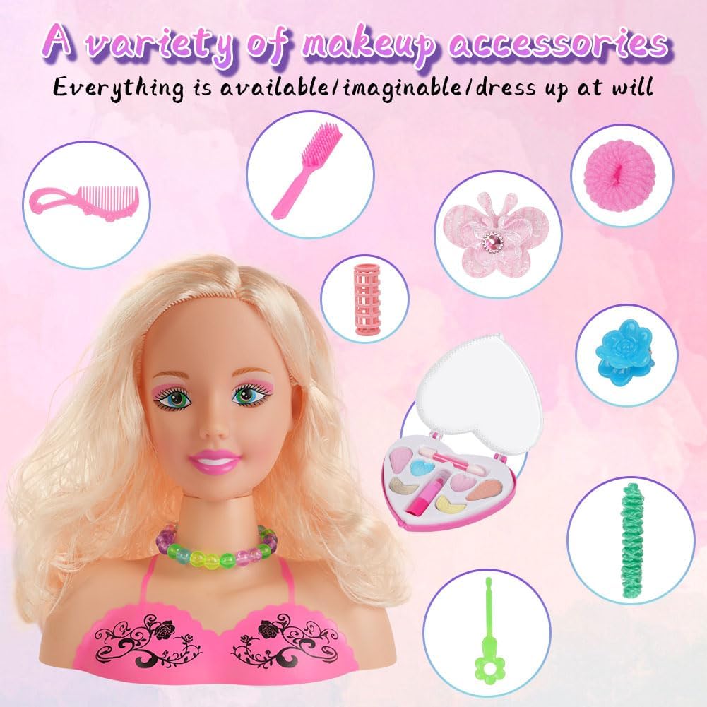 ✅【Simulazione sicura】Il giocattolo con la testa di bambola ha capelli folti, tratti del viso squisiti, pelle simulata e liscia ed è progettato per non ferire le persone. Mentre giocano con i giocattoli per il trucco, i bambini simulano il trucco e imparano a pettinarsi per creare un look da ragazzina. Non devono preoccuparsi di danneggiarsi la pelle e le mani quando usano giocattoli con teste di bambola per pettinarsi i capelli. 🎀【Truccatore per capelli】Giocare con questo set di giocattoli per la testa delle bambole consente ai bambini di imparare l'acconciatura e il trucco in modo divertente. I capelli morbidi e fini possono essere facilmente acconciati con gli accessori, rendendo divertenti l'acconciatura e il trucco. Il tuo bambino può vestirsi come vuole e divertirsi a disegnare bellissime acconciature per la bambola. 🌈【Sviluppa l'immaginazione】I disegni carini e i colori vivaci degli accessori per capelli consentono ai tuoi bambini di creare una varietà di bellissime acconciature diverse e applicare cosmetici come ombretti, rossetto e fard. Ciò coltiva l'abilità pratica dei bambini, migliora la creatività dei bambini e consente ai bambini di acquisire un senso di realizzazione divertendosi. 🧡【Promuovere la relazione genitore-figlio】Il set per il trucco della testa a forma di bambola aiuta a coltivare la consapevolezza estetica dei bambini e a migliorare la loro capacità estetica. Gioca con adulti o amici per promuovere l'interazione genitore-figlio. 🎁【REGALO IDEALE】Questi giocattoli per bambole sono regali perfetti per le vacanze o il compleanno delle ragazze. Sono perfetti per il gioco di finzione, consentendo alle ragazze di imitare il trucco e imparare a pettinarsi i capelli per creare un look unico che adoreranno.