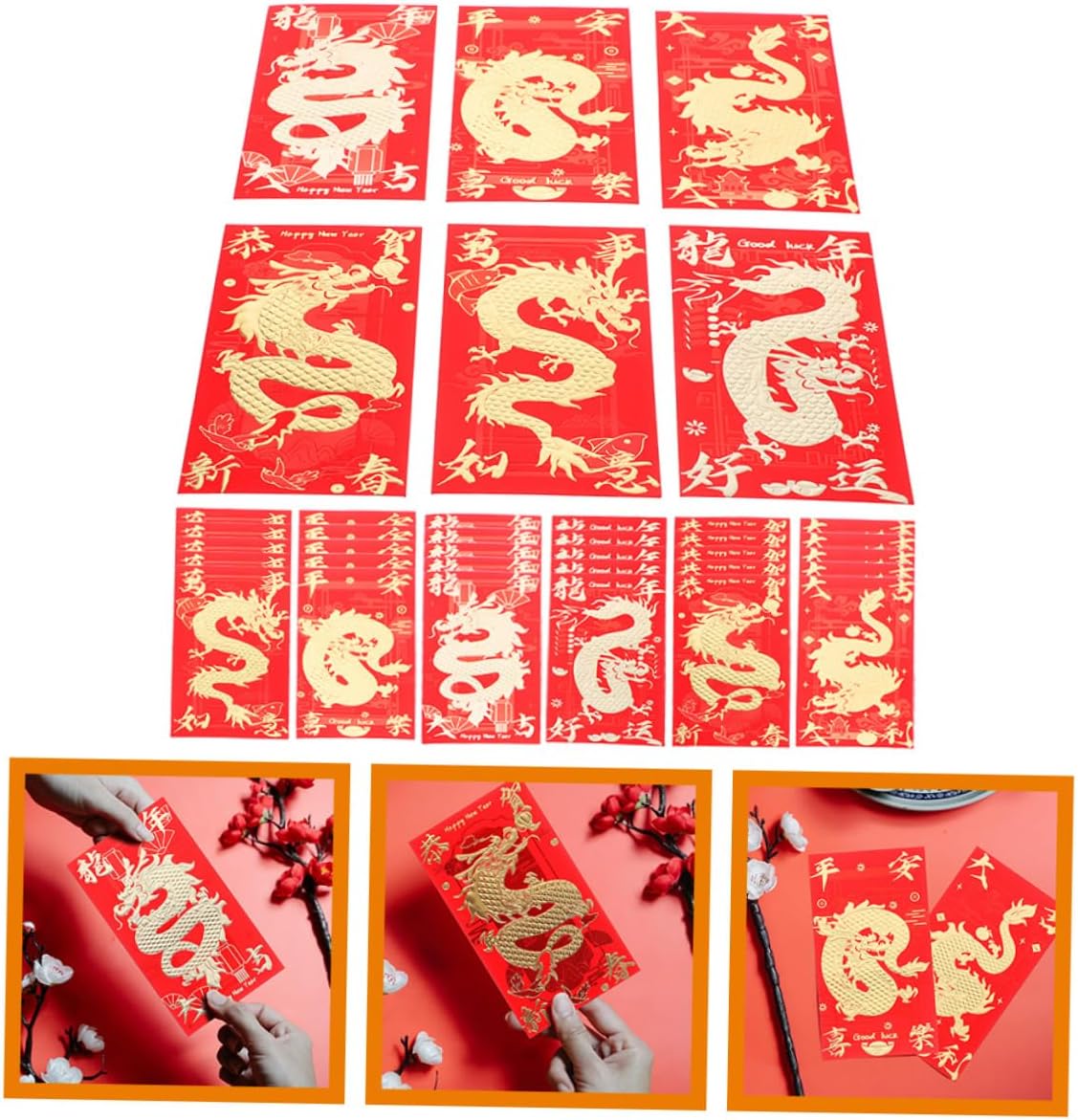 Grandi dimensioni: le buste rosse possono contenere più banconote senza piegarle, rendendole più comode da usare, migliorando l'eleganza generale, buste per contanti, pacchetti di carta rossa con motivo a drago Ampia applicazione: queste buste rosse sono ottime per il capodanno cinese, matrimoni, anniversari e molte altre celebrazioni, tasche rosse, buste per soldi Buste di carta rosse: il motivo delicato rende la busta rossa più elegante e aggraziata, evidenziando l'atmosfera del festival, borsa porta soldi portafortuna quantità: sono disponibili numerosi pacchetti rossi, garantendoti una abbondante, busta rossa per festival, busta con motivo drago Materiale cartaceo: la busta rossa è fatta di carta, ha una sensazione confortevole, non danneggia facilmente, garantendo la qualità e la durata, buste per soldi da matrimonio, di capodanno