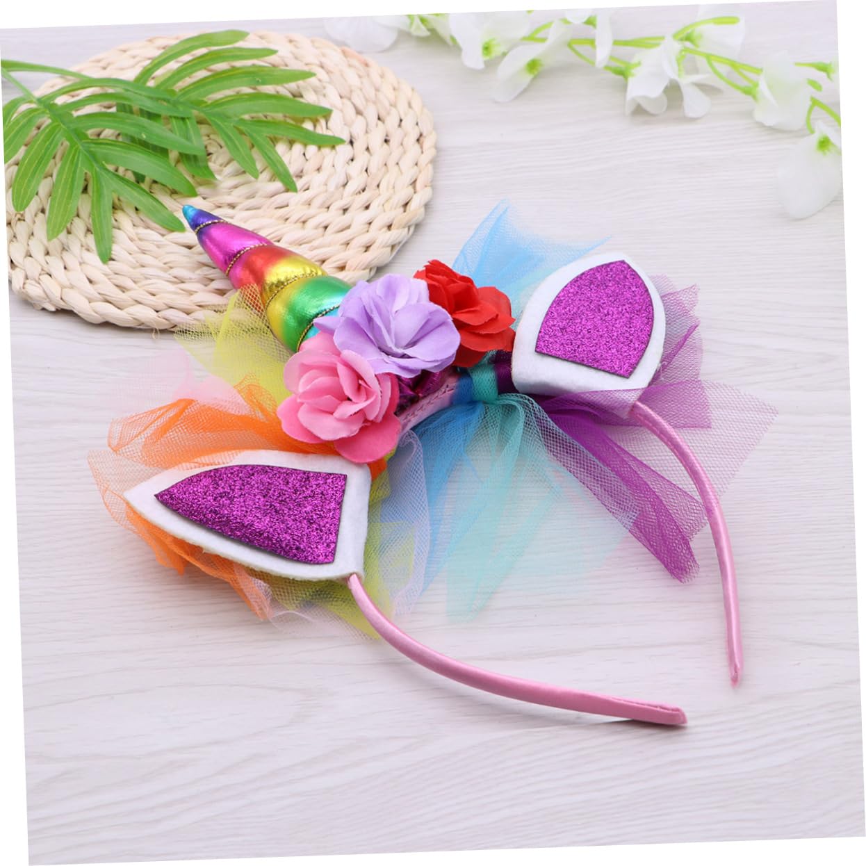 Copricapo di unicorno: ottimo anche come supporto fotografico. Fascia per capelli con unicorno per bambini: leggera e comoda da indossare. Cerchietto per unicorno - Perfetto per festival, feste di compleanno, feste in costume, cosplay, Natale ecc. Copricapo per unicorno - con corno di unicorno, orecchie di animali e rose squisite, decorazione in granatina, delicata e carina, adatta ai bambini. Fascia per capelli con unicorno per bambini: meravigliosa per i bambini.