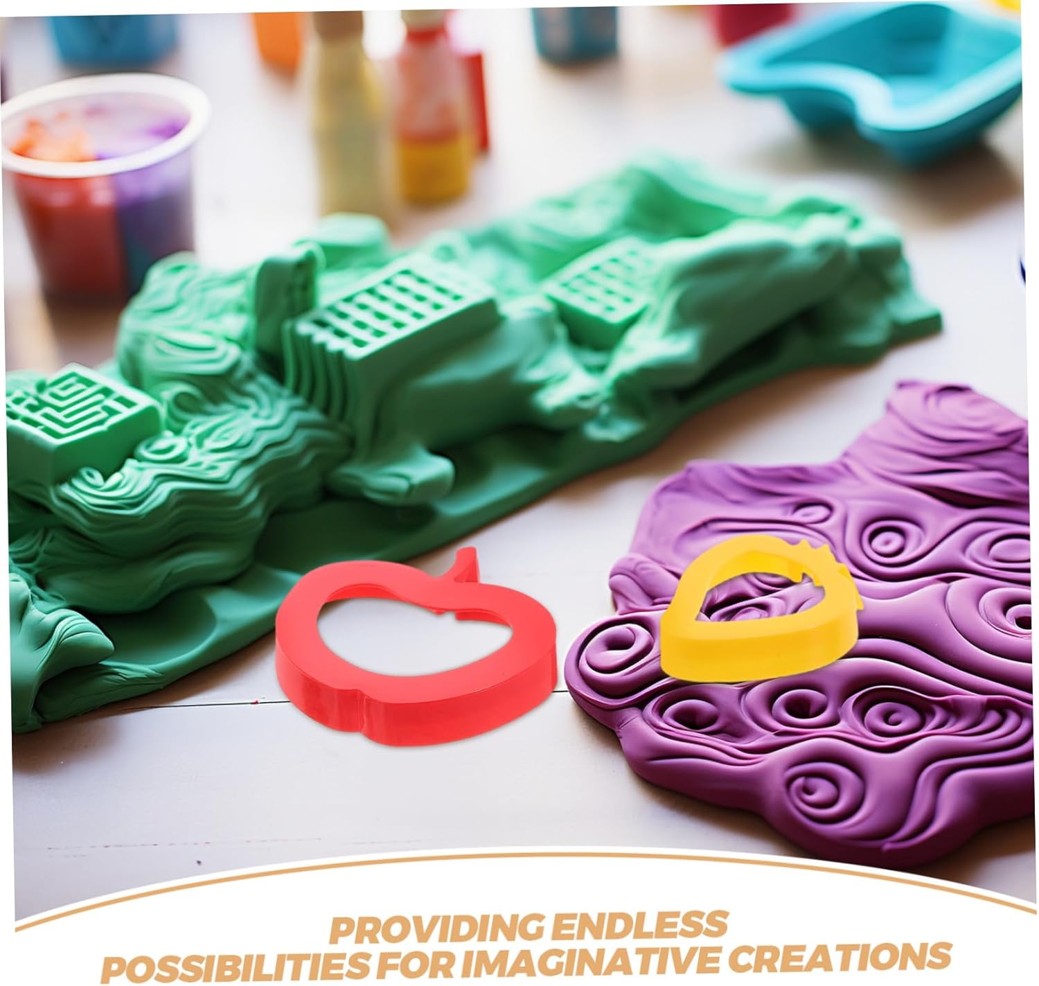 Strumenti per la lavorazione dell'argilla: perfetti per accessori per modellare l'argilla e giocattoli per l'impasto. Questo set è adatto per varie attività creative a casa o a scuola, accessori per l'impasto, giocattoli, stampi per l'impasto per Promuove l'apprendimento attraverso: questi strumenti per impastare uniscono divertimento ed educazione e aiutano i bambini a sviluppare il pensiero spaziale e le capacità motorie. Tagliabiscotti in plastica, accessori per impastare Varietà di forme e stampi: contiene un'ampia selezione di tagliabiscotti a forma di frutta e accessori artigianali in argilla che offrono infinite possibilità per creazioni fantasiose, forme di pasta per biscotti e stampi in argilla per la lavorazione Tagliabiscotti alla frutta: realizzati appositamente per le mani dei più piccoli, questi tagliabiscotti in plastica consentono ai bambini di modellare senza sforzo l'impasto e quindi di migliorare le tue abilità artigianali e la fiducia in te stesso. strumenti per modellare l'impasto, stampi per tagliare l'impasto strumenti per l'impasto per: questi accessori per l'impasto in plastica garantiscono esperienze artigianali per bambini piccoli e in età prescolare, strumenti per l'impasto per, strumenti per il gioco dell'impasto
