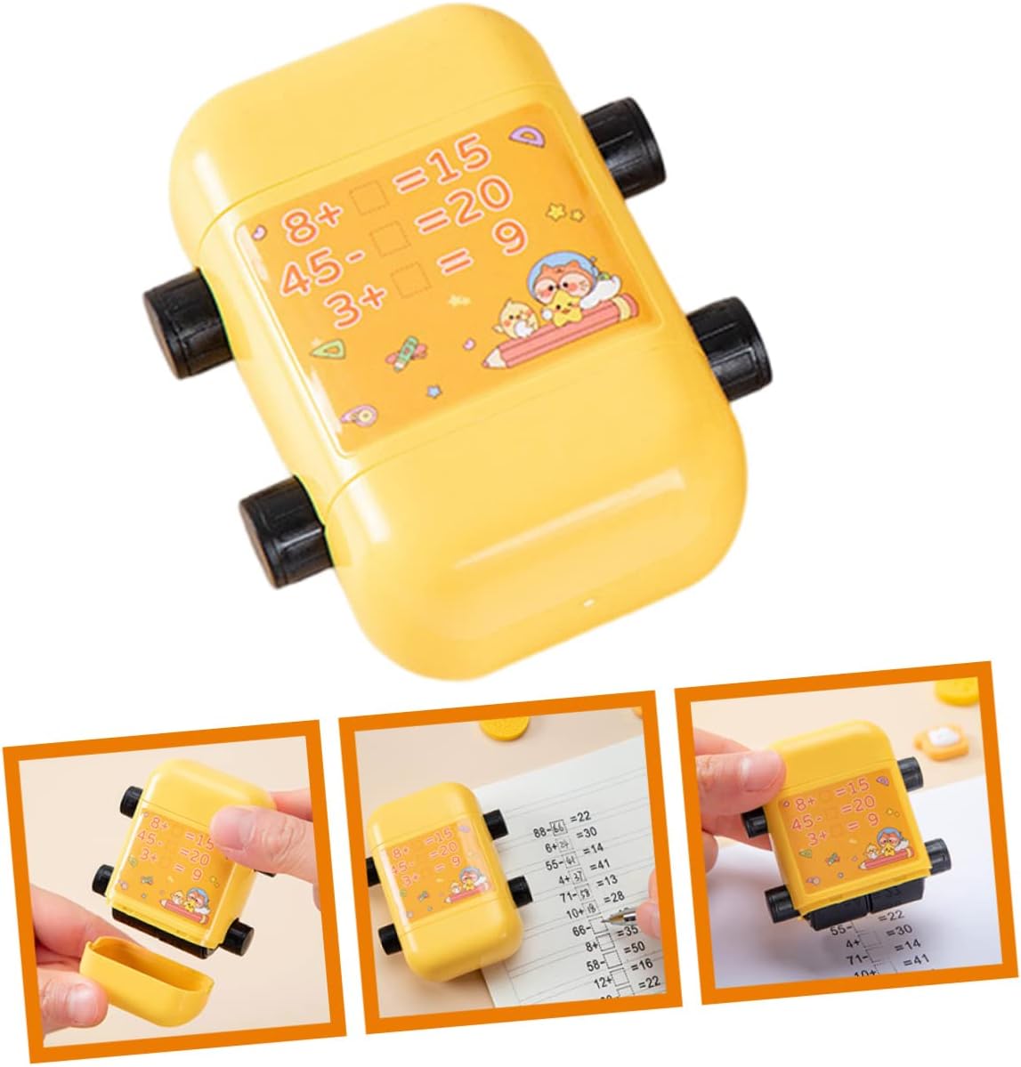 Timbro matematico a forma di cartone animato: i timbri rotanti con i numeri sono divertenti come giocattoli per rendere l'apprendimento della matematica divertente e facile per i , adorabile timbro rotante Accessorio per studenti: fai rotolare il timbro a velocità costante sulla carta bianca e i problemi matematici appariranno davanti a te, timbro per studenti resistente all'usura Matematico riutilizzabile: con il design compatto, è facile da trasportare e riporre, molto comodo, matematico Timbro matematico compatto: facile da usare, il problema matematico può apparire davanti ai facendo scorrere il timbro, che può essere regolato, timbro matematico in plastica Piccolo timbro per studenti: il timbro matematico è realizzato in materiale plastico, che può essere utilizzato a lungo, timbro a riutilizzabile