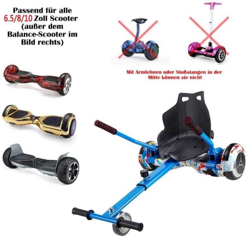 - Nota: per una migliore esperienza utente, si consigliano controlli periodici e la manutenzione del prodotto. Si consiglia di utilizzare una chiave a cricchetto da 17 mm per regolare e fissare le strutture principali. - Facile da installare. Facile da gestire. Adatto a tutti gli skateboard da 6,5, 8 e 10 pollici. La scatola contiene tutte le parti e le chiavi necessarie per il montaggio. - Molto divertente e facile da controllare. Capace di raggiungere una velocità fino a 20 km / h (la velocità massima del tuo scooter elettrico). - Sedile Kart regolabile. Accessorio perfetto per il tuo scooter elettrico. - è realizzato con materiali di alta qualità per garantire sicurezza e un'esperienza utente confortevole. Il sedile è progettato per sopportare un peso fino a 95 kg, ma non dovresti mai caricarlo con un peso che supera la capacità di carico massima del tuo scooter elettrico.