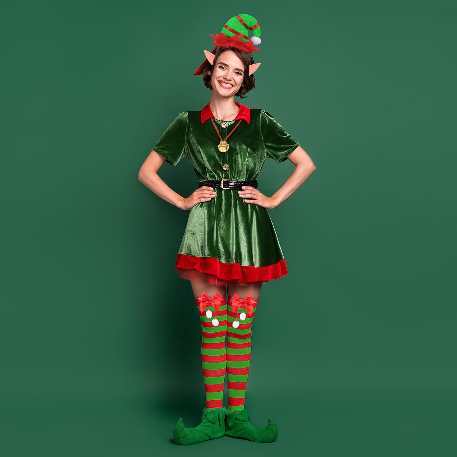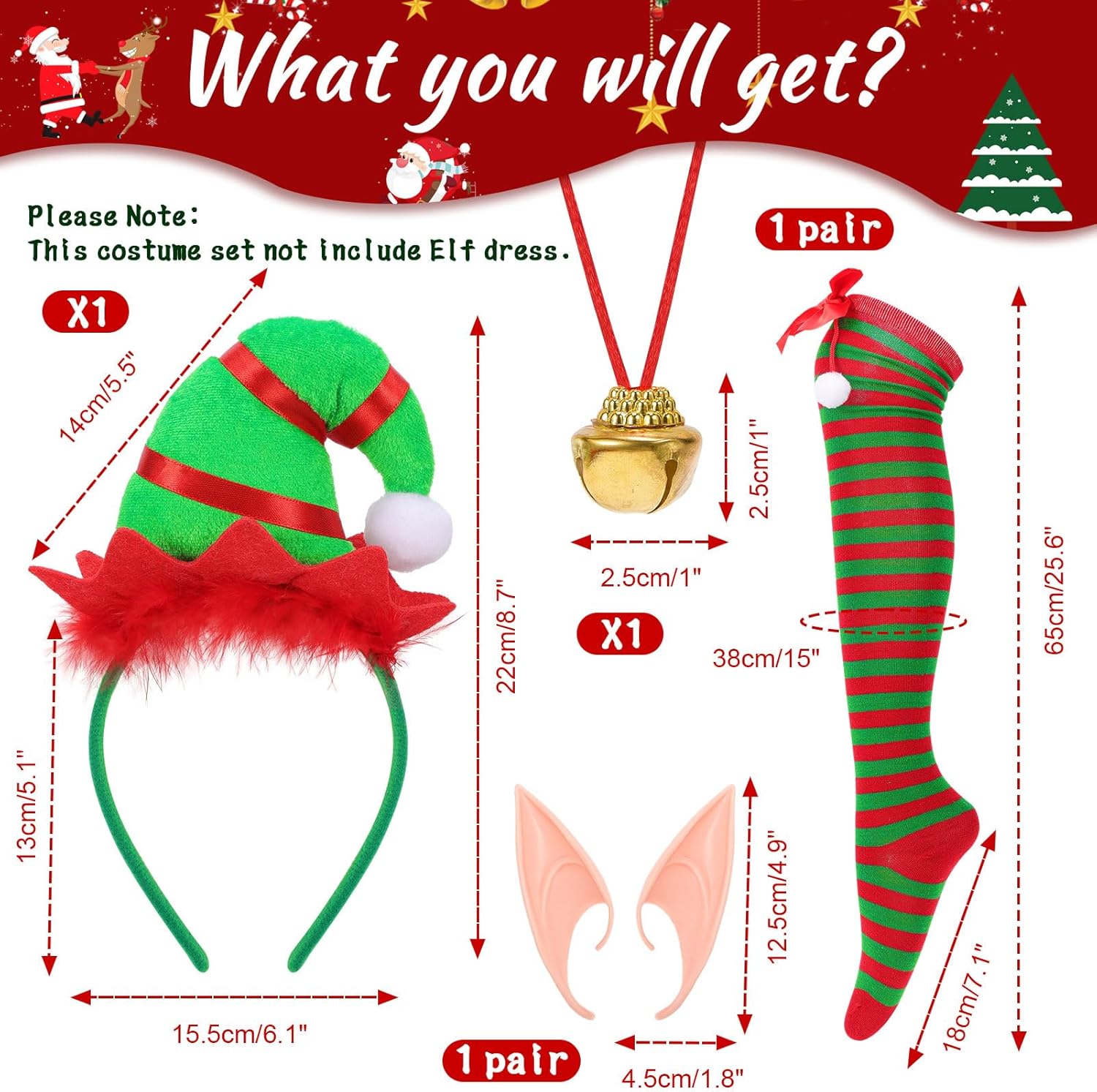 Costume da Elfo di Natale: Otterrete 1pcs Cerchietti Natalizi Cappello da Elfo + 1 paio di Orecchie da Elfo + 1 paio di Calzini Natalizi + 1pcs Collana Natale, adatto per le donne e le ragazze, perfetto per la festa di Natale Costume, Elf Costume party, Cosplay party, masquerade, carnevali, giochi di ruolo, feste di trucco, festa in maschera, ecc. Elfo di Natale Designs: Il nostro Cappello da Elfo Cerchietto Natalizio, Collana, e Orecchie Elfo e Calze Elfo sono progettati elementi Elf, nei colori verde, rosso, oro e bianco. Indossare questa fascia Elf Natale come accessori di Natale, e anche adatto per il vostro abbigliamento quotidiano. Alta qualità: La fascia per capelli di Natale e la calza di Natale Elf Tights sono realizzati in tessuto premium e plastica elastica, le orecchie di fata Elf Ear sono realizzati in lattice e facile da usare, Nota: il pacchetto non include la colla. Il nostro costume da elfo è comodo per essere indossato a lungo, di dimensioni adeguate con un'enorme elasticità, facile da indossare e da togliere, adatto sia ai bambini che agli adulti. Perfetto costume di Natale: Questi Costume Natale si applicano alla grande festa di Natale, matrimonio, compleanno e altre occasioni, possono essere inviati come regali per i vostri familiari e parenti e amici, o come oggetti di scena fotografia, migliora l'atmosfera di festa sul carnevale di Natale. Acquista con fiducia: Sicuramente aggiungerà più divertimento alle celebrazioni della festa di Halloween! Per qualsiasi problema, inviateci un'e-mail su Costume da Elfo di Natale. Altri Costume da Babbo Natale, Cerchietti Natalizi, Scatola Calendario dell’Avvento Fai Da Te, Natale Perline di Plastica Decorazioni, Decorazioni Natalizie per i tavoli visitate la vetrina di Howaf.
