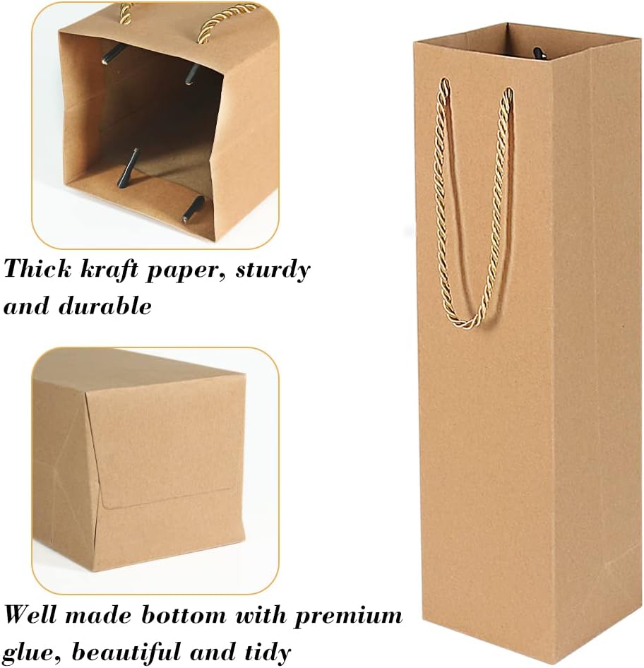 ★ I sacchetti regalo per bottiglie sono realizzati in carta kraft naturale di alta qualità da 260 g, che è durevole e resistente, 100% riciclabile, riutilizzabile e biodegradabile ★ Questi sacchetti regalo per bottiglie realizzati in carta spessa sono dotati di cinghie belle e robuste per tenerli in posizione verticale e un manico in corda intrecciata satinata, morbida e lucida ★ La base ben realizzata è con colla di alta qualità, pulita e super resistente per adattarsi a quasi tutti Per contenere bottiglie di vino (750 ml) o altri regali lunghi e stretti, adatti a chiunque occasioni, feste ed eventi ★Le bellissime buste per bottiglie di vino hanno un design semplice e pulito, la tinta unita fa risaltare il tuo regalo, puoi anche decorarla con le tue scritte aggiuntive o adesivi sulla borsa