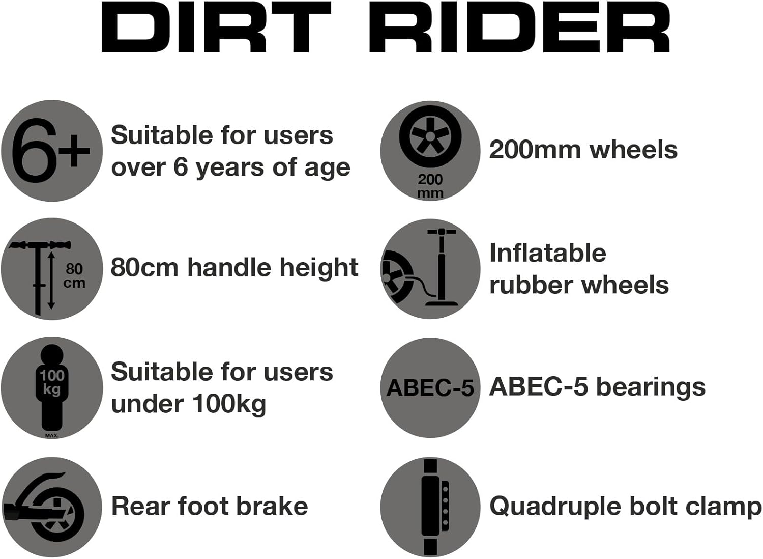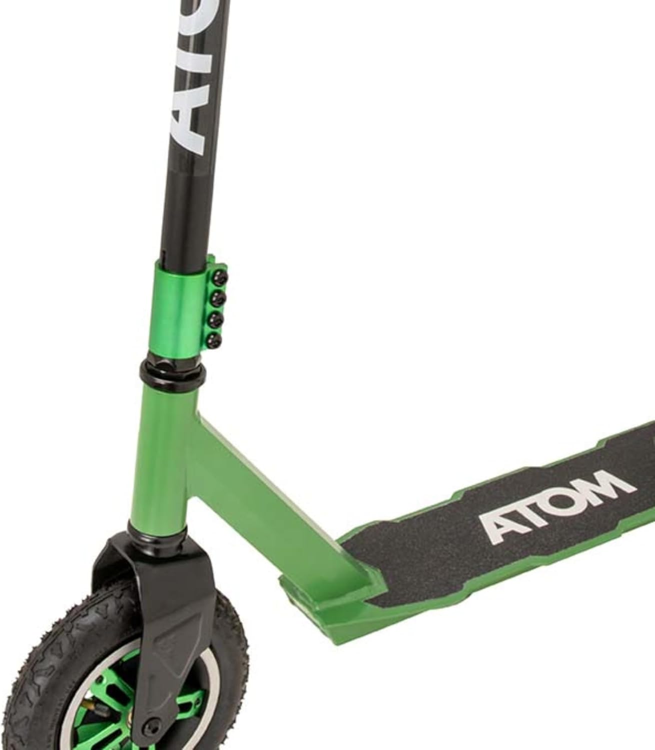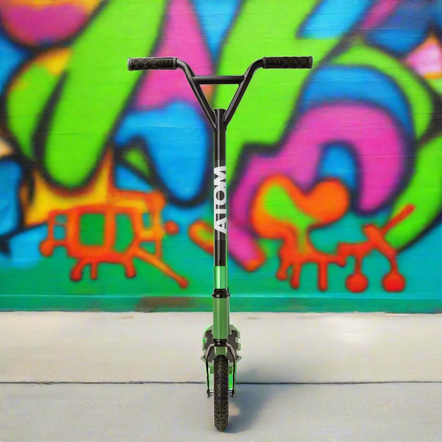 Atom Dirt Rider - Ciao avventuriero! Cerchi di dare un po' di adrenalina alle tue escursioni all'aperto? Dai il benvenuto al ATOM Dirt Rider Scooter – il compagno ideale per brividi fuoristrada. Guidalo su terreni accidentati o semplicemente percorri le strade. Nessuna sfida è troppo grande per il tuo bambino. Mentre il tuo piccolo esplora i percorsi off-road, potrai osservarlo mentre pratica acrobazie e trucchi su questo scooter. Dalla corsa nel parco skate fino alla partecipazione a competizioni, questo scooter è perfetto per i tuoi bambini. Perfetto per le Avventure Fuoristrada - Questo scooter ATOM Dirt Rider è ideale per ogni bambino pronto a iniziare la propria avventura con trucchi e rampe fuoristrada. Con un'altezza del manubrio di 90 cm e un robusto telaio in lega, non c'è nulla che il tuo bambino non possa realizzare. Dalla pratica di trucchi e acrobazie fino a dominare le discese, questo scooter è pronto per tutto. Grazie alle ruote d'aria da 200 mm, il tuo bambino avrà un'ottima aderenza mentre sfreccia lungo il percorso sterrato o esplora i boschi più profondi e oscuri. Regalo Ideale o Presento - Questo scooter è il regalo perfetto per ogni bambino appassionato di scooter. Non solo presenta un design elegante e alla moda, ma offre anche ore infinite di divertimento. Che sia per compleanni, Natale o semplicemente per una sorpresa speciale, osserva come gli occhi del tuo bambino si illuminano. Permetti al tuo bambino di sviluppare le proprie capacità motorie con questo scooter, migliorando coordinazione, resistenza e forza. Questo scooter è ideale per far uscire il tuo bambino dai tablet e incoraggiarlo a stare all'aperto. Specifiche del Prodotto - Include: 1x Scooter ATOM Green Dirt Rider. Altezza del Manubrio: 90 cm. Peso Massimo: 100 kg. Cuscinetti ABEC-5. Fissaggio a Quattro Bulloni. Dimensioni - H99 cm x L52 cm x P86 cm. Adatto per bambini di età superiore ai 6 anni. Atom Scooters - Accendi l'Avventura! Progettati per ragazzi e ragazze temerari, i nostri scooter sono il massimo per bambini e adolescenti. Con un design elegante e una costruzione resistente, offriamo una vasta gamma di scooter, dai primi scooter perfetti, agli scooter luminosi, ai dirt riders e skateboard! La nostra missione è semplice ma profonda: dare potere alle giovani menti con la gioia del movimento e lo spirito di esplorazione. Atom Scooters - dove ogni corsa è un'avventura che aspetta di accadere.