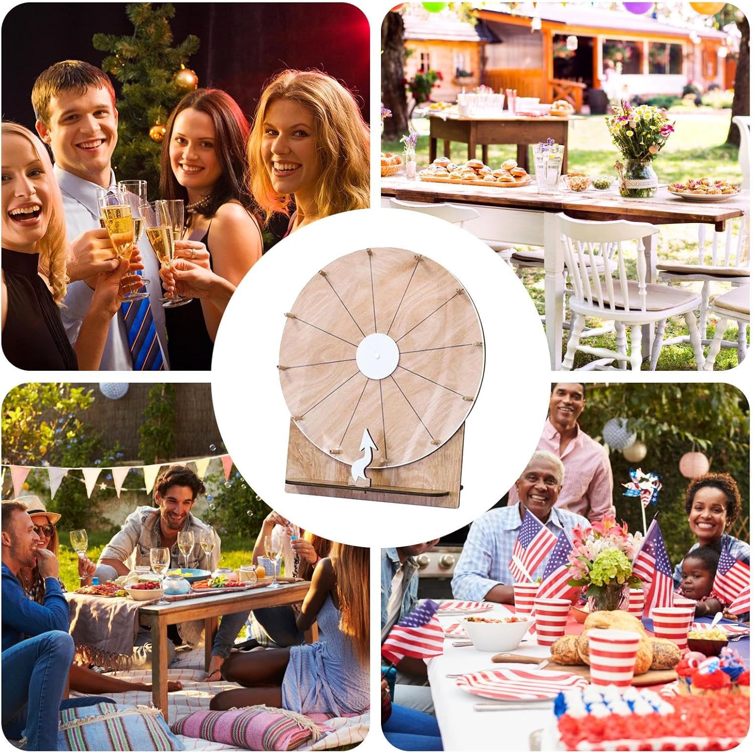 Facile assemblaggio: L'assemblaggio rapido e semplice senza strumenti complicati consente un'installazione rapida per un utilizzo immediato senza particolari sforzi Costruzione robusta: Sapientemente realizzata in legno, questa ruota della fortuna garantisce stabilità e resistenza per un uso a lungo termine, offre prestazioni affidabili con durata legata al materiale senza sacrificare la qualità o la funzionalità Stabile e scorrevole: La combinazione di materiali di alta qualità di cuscinetti durevoli e piattaforma solida garantisce una rotazione fluida che aumenta il fattore divertimento e offre un supporto stabile ad ogni utilizzo Idoneità per eventi: Grazie ai 12 campi cancellabili consentono di modificare facilmente loghi e testo, fornendo flessibilità opzioni di etichettatura per diversi eventi e impostazioni. Ampia usabilità: progettato per l'uso in feste, riunioni di famiglia, fiere, eventi a tema e fiere. Fornisce intrattenimento interattivo e promuove il coinvolgimento di tutti gli ospiti. L'usabilità versatile assicura che ogni evento diventi un'esperienza speciale.