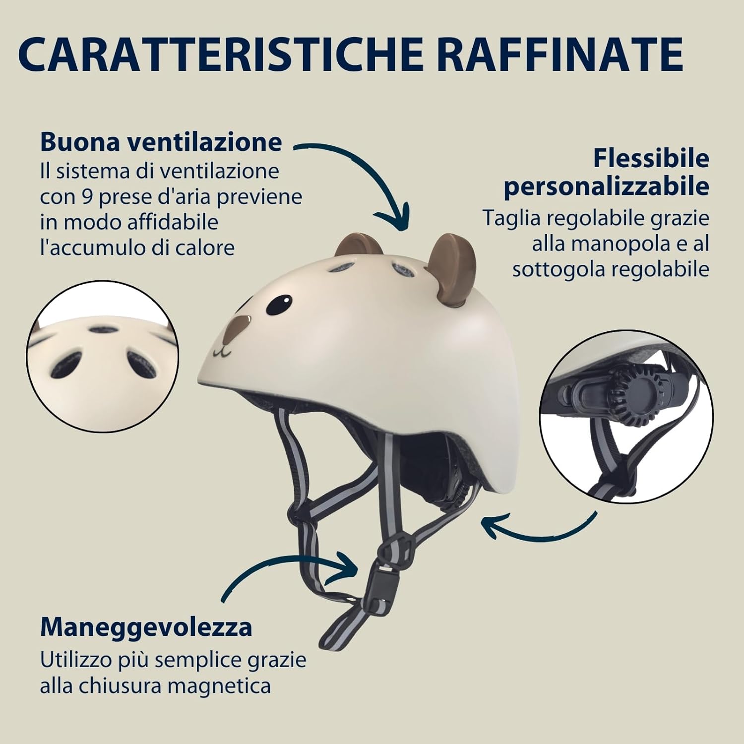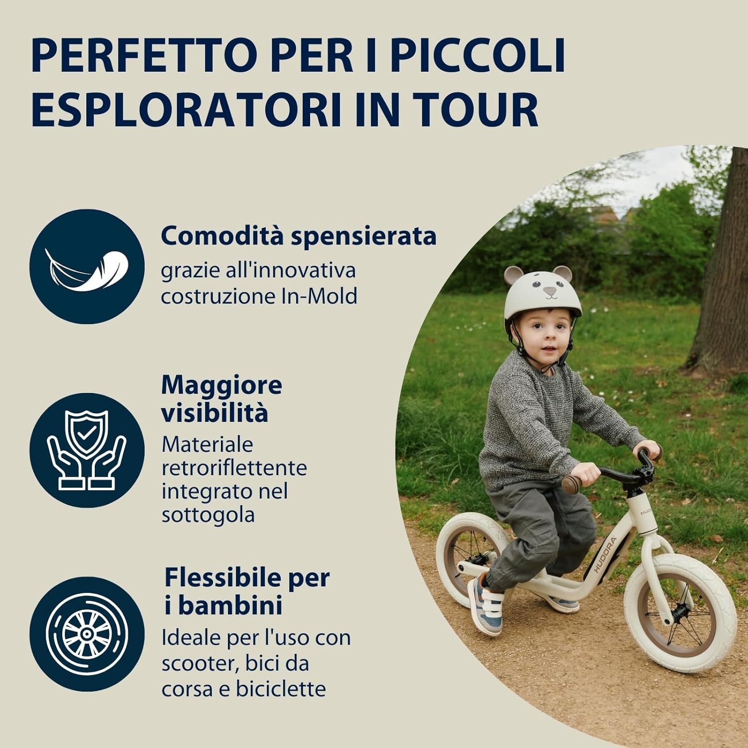 COMODO E DI QUALITÀ - Grazie al sistema di aerazione con 9 air vents, si evita efficacemente il ristagno di calore mentre l’innovativa realizzazione in-mould garantisce spensieratezza. DIVERTIMENTO SICURO - I quattro cuscinetti morbidi e lavabili servono come protezione affidabile dai colpi. Il materiale catarifrangente integrato nel sottogola garantisce maggior visibilità nella penombra. DESIGN SMART - Oltre alla fantasia con gli orsi il casco è dotato di una pratica chiusura magnetica per toglierlo e metterlo facilmente - La combinazione perfetta di estetica e comodità! MISURA AD HOC - Il nostro casco per bambini è disponibile nelle misure XXS (per teste da 44 a 47 cm) e XS (per teste da 48 a 52 cm) e si adatta alla circonferenza della testa con una chiusura a rotazione. HUDORA - L’azienda familiare alla 4a generazione che affascina i suoi clienti con esperienza, intuizione per le tendenze e la migliore qualità. Provare per credere!