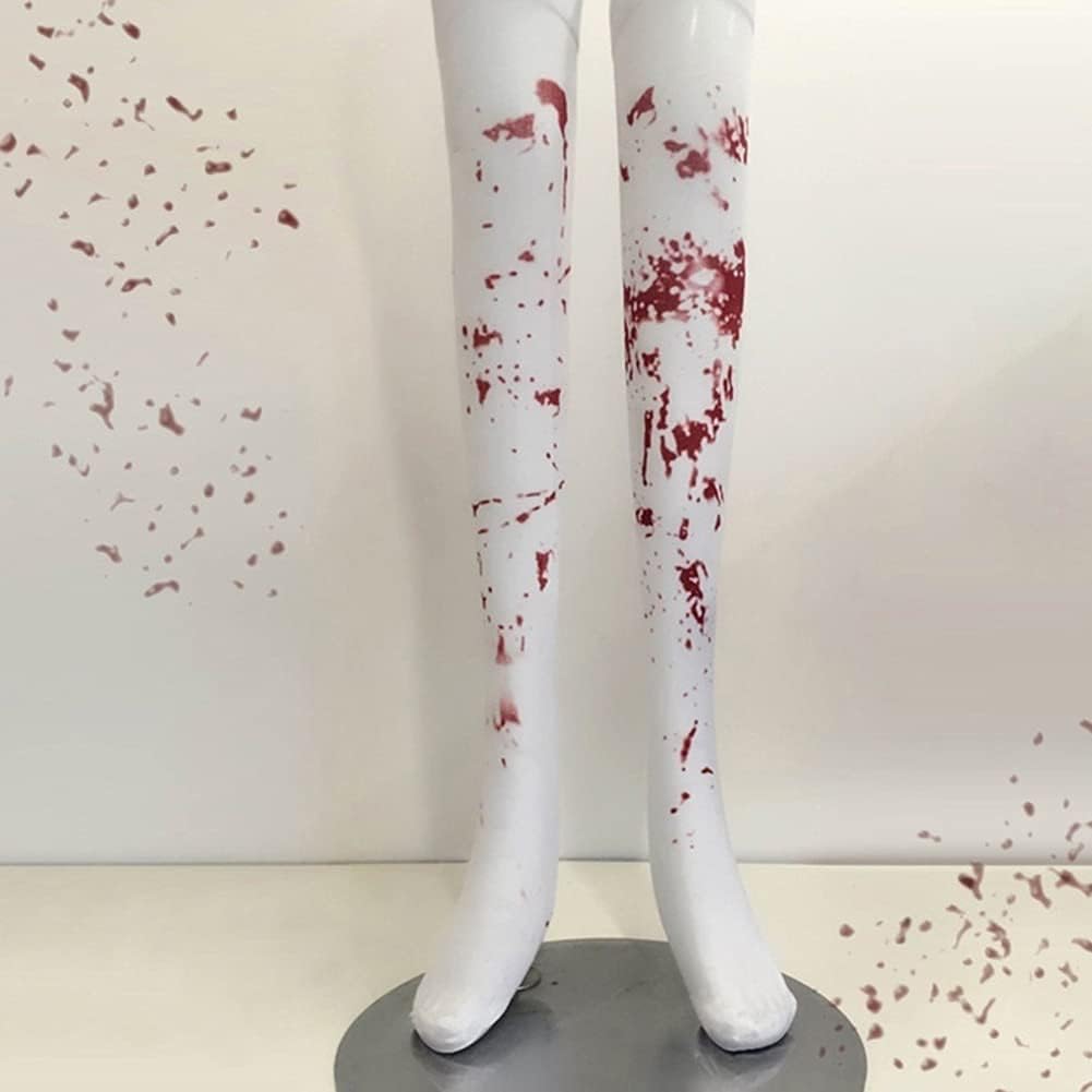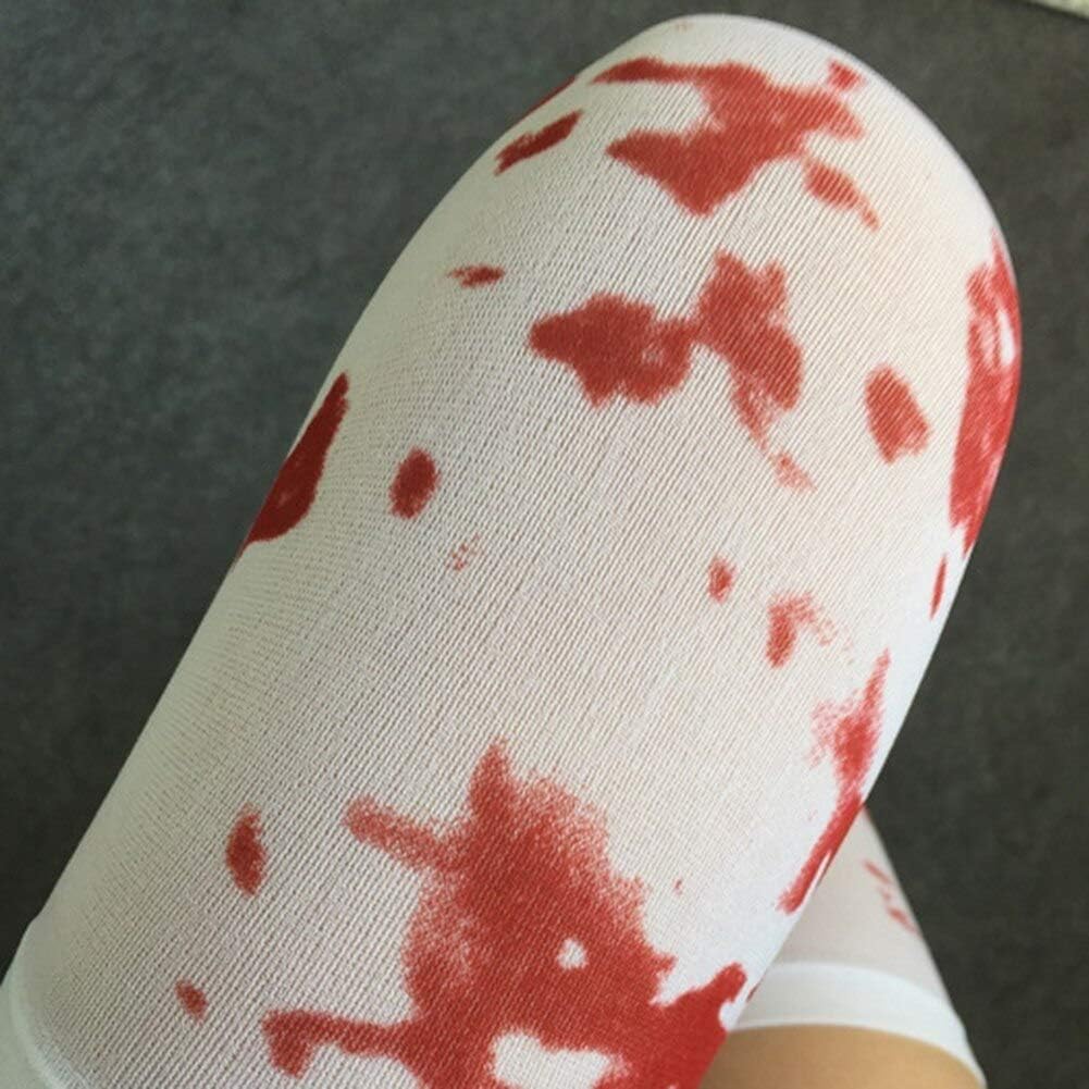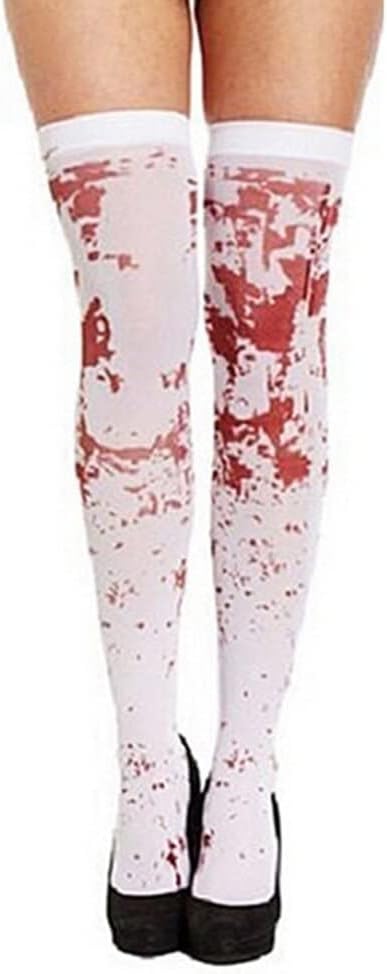 Macchie di sangue rosse sono stampate su questi calzini bianchi. Accessorio ideale per il costume in maschera di Halloween. Comodo e traspirante da indossare. Tipo: calzini sopra il ginocchio