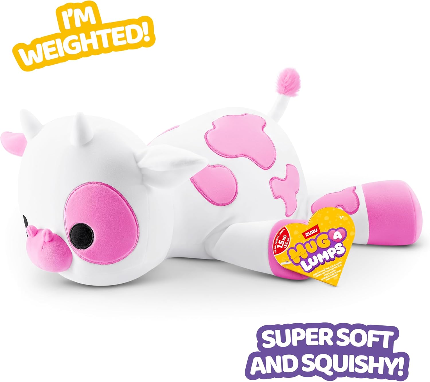 Hug-A-Lumps (medium di ZURU, peluche ponderato coccoloso e schiacciabile, vacca (trifoglio)