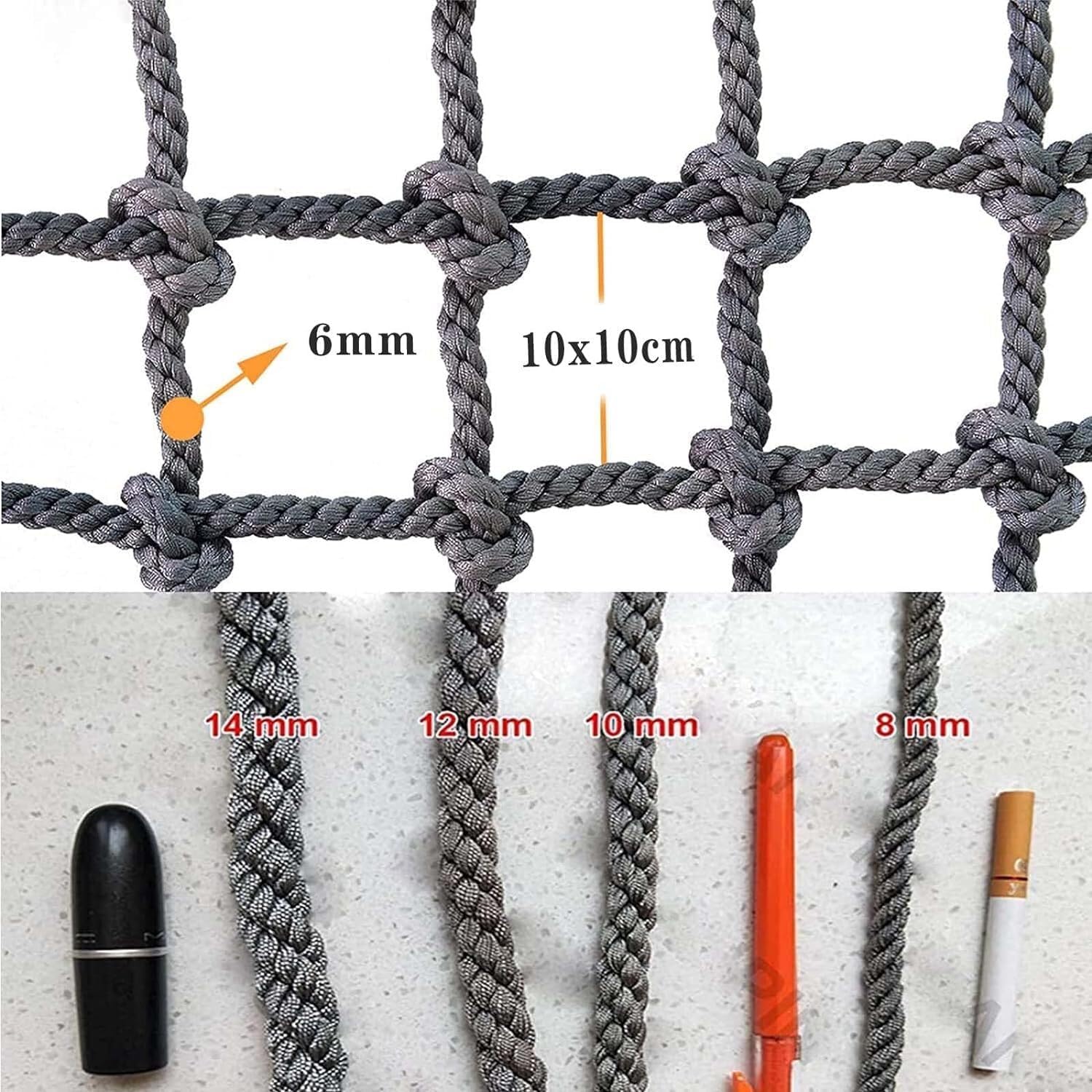 Dimensioni della rete di sicurezza: lo spessore della corda è di 6 mm e la distanza netta è di 10 cm. Nota: La rete di sicurezza può essere personalizzata per voi secondo il vostro scopo. Se si desidera personalizzare altre dimensioni (diametro del filo, dimensione della griglia, lunghezza * larghezza), si prega di inviare un'e-mail per contattarci. Natura della rete da arrampicata: la rete di sicurezza per bambini, la corda intrecciata di alta qualità e la corda annodata professionale rendono la corda più durevole, forte resistenza alla trazione e resistenza all'abrasione, forte capacità portante, grande capacità, forte resistenza agli urti e non facile da danneggiare. Adatto per tutti i tipi di decorazione d'interni, prevenzione delle cadute e protezione. [Rete a corda multiuso]: questa rete di sicurezza è ampiamente utilizzata in scale, balconi, decorazioni, stendibiancheria, pali telefonici, asili, recinzioni da palestra, reti da soffitto, reti per quarantena per piante, reti per gatti, reti a tunnel, reti di protezione degli animali, reti per bambini, reti di isolamento per animali domestici, reti di sicurezza per bambini e molti altri usi. Eccellente attrezzatura per parchi giochi: questa rete da arrampicata può essere considerata un buon pezzo di ricambio per attrezzature sportive. Le reti protettive da arrampicata sono resistenti all'usura, leggere, durevoli, cablaggio preciso, superba fattura, leggere, dissipazione del calore, impermeabili, ventilazione e anti-invecchiamento. Può evitare che gli oggetti cadano e garantire la sicurezza di animali domestici, bambini, ecc., sia sicuri che belli. [SUGGERIMENTI DI SICUREZZA]: controllare regolarmente la rete di sicurezza per eventuali pericoli causati da fattori esterni o umani e sostituirla in tempo per proteggere la sicurezza dei bambini.