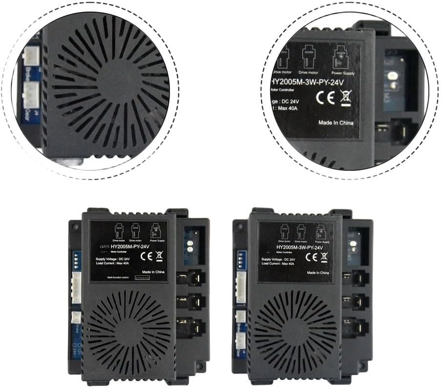 Alimentazione da 24 V: questo controller funziona perfettamente con un ingresso DC 24 V, rendendolo la scelta perfetta per alimentare efficacemente le auto elettriche dei bambini. [Alta capacità di carico] Con la capacità di supportare fino a 40 A di corrente, gestisce le operazioni intensive del motore senza sforzo, garantendo prestazioni costanti durante il gioco. [FUNZIONALITÀ DI CONTROLLO MOTORE] Gestisce in modo efficiente i motori di azionamento, fornendo accelerazione e decelerazione fluide per un'esperienza di guida coinvolgente. [PER LA CERTIFICAZIONE] Soddisfa gli standard di sicurezza, questo prodotto è progettato pensando alla sicurezza, garantendo un funzionamento sicuro per i giovani conducenti. Ampia compatibilità: realizzato per essere compatibile con una varietà di modelli di auto elettriche per bambini, questo controller migliora la versatilità e l'usabilità su diversi veicoli.