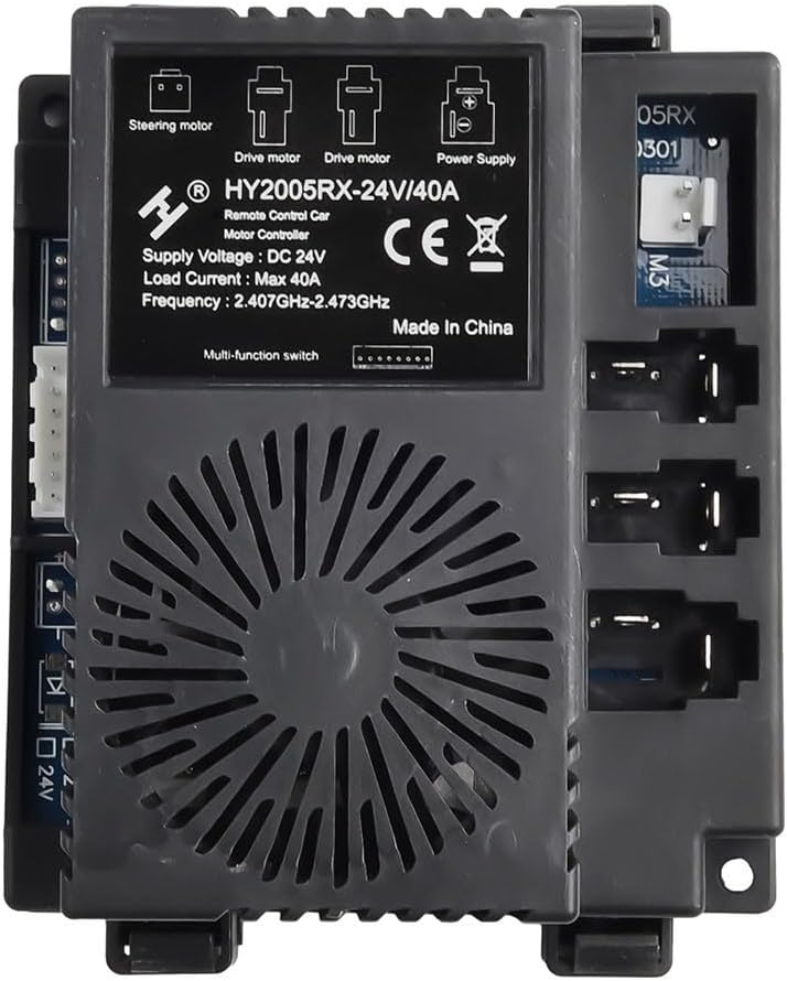 Telecomando facile da usare: il telecomando 4G consente un facile utilizzo, consentendo al bambino di spostare l'auto in avanti, indietro e girare a sinistra o a destra con facilità. [RICAMBIO PER VECCHI PARTI] Progettato come sostituto per componenti danneggiati o obsoleti, questo ricevitore è perfetto per ripristinare le prestazioni dell'auto giocattolo preferita del tuo bambino. [Prestazioni potenti] Con una tensione nominale di 24 V e una robusta capacità di 40 A, questo ricevitore è dotato di una ventola di raffreddamento per un funzionamento ottimale durante il gioco. Dimensioni e compatibilità: si prega di verificare che le parti corrispondano alla configurazione esistente prima dell'acquisto; questo ricevitore è compatibile con trasmettitori 4G per un uso senza problemi.