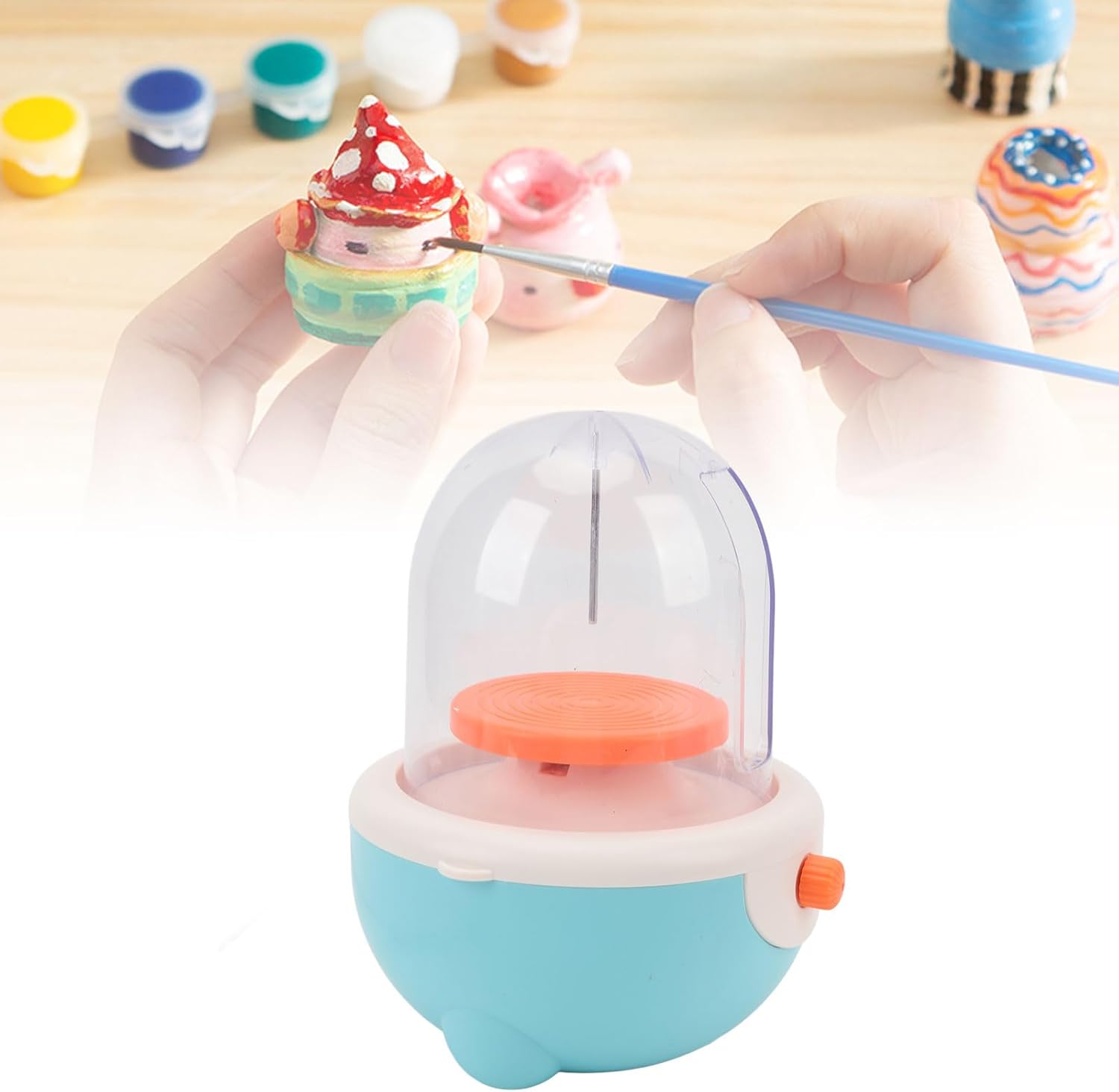 [DESIGN ELETTRICO] Goditi la creazione di ceramiche senza sforzo con questo kit di ruote per ceramiche elettriche. Basta collegarlo e iniziare a creare senza problemi. [PIATTO GIREVOLE] Il design del piatto girevole elettrico rende la modellatura dei pezzi di ceramica più semplice e divertente per i bambini. [SICURO E CONVENIENTE] Questo kit di ruote in ceramica elimina la necessità di bruciare la ceramica, garantendo un'esperienza e conveniente per i bambini. [GIOCATTOLO EDUCATIVO] Sviluppa le abilità manuali e la creatività di tuo figlio con questo kit di ruote in ceramica. Non è un giocattolo, ma strumento per l'apprendimento e il pensiero fantasioso. [PITTURA FAI DA TE] Lascia che la creatività di tuo figlio risplenda con l'argilla morbida e gli strumenti inclusi. Possono colorare e modellare i propri pezzi di ceramica unici con questo kit.