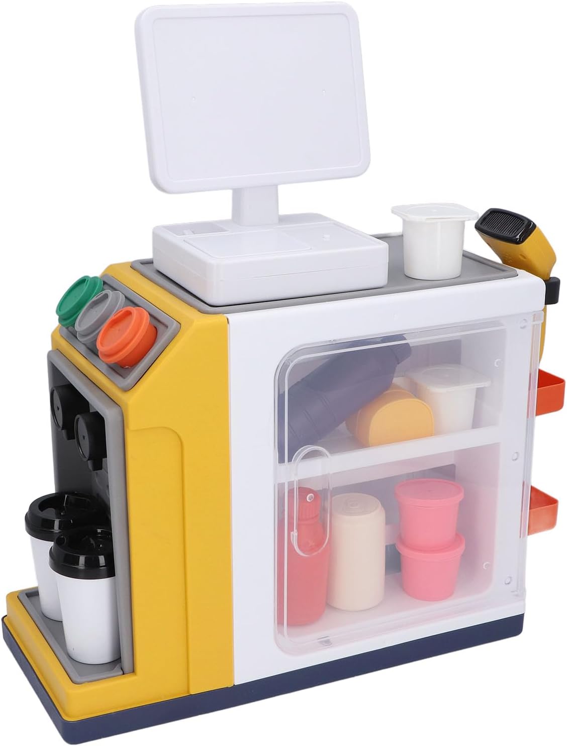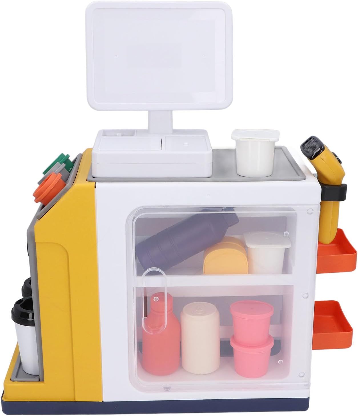 [DESIGN REALISTICO] Prova la gioia del vero shopping al supermercato con lo squisito design d'imitazione di questo giocattolo. [MIGLIORAMENTO COGNITIVO] Migliora le capacità di calcolo e logiche di tuo figlio con questo set di giochi finti. [GIOCATTOLO MULTIFUNZIONALE] Include un registratore di cassa, una caffettiera e un frigorifero per un'esperienza di gioco diversificata. [MATERIALE SICURO] Realizzato in materiale plastico ABS adatto ai bambini che soddisfa gli standard di sicurezza. [COMPLEANNO IDEALE] scelta per i compleanni dei bambini, garantendo un gioco gioioso e una celebrazione.