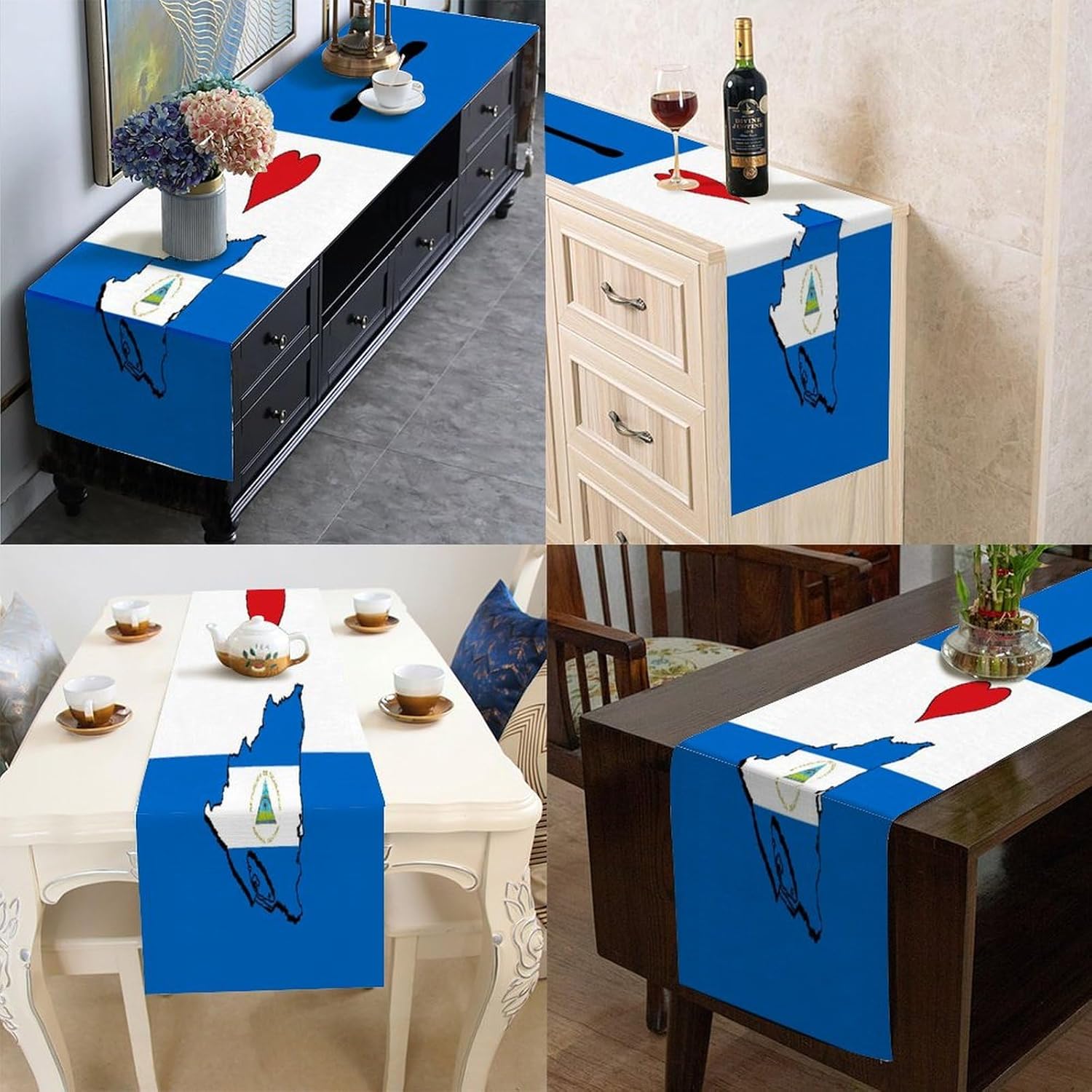 I Love My Country, Runner da tavola in cotone e lino con bandiera del Nicaragua, 40,6 x 183 cm, morbido runner da tavolo per feste, camera da letto, comò