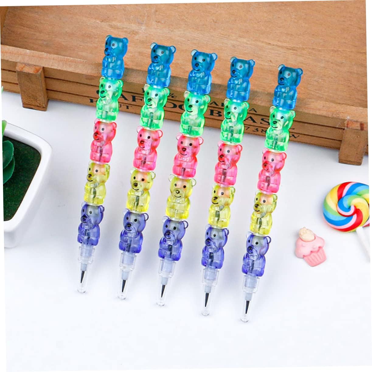 Simpatico orsetto a forma di matita: può essere regalato ai tuoi bambini a cui piace disegnare o scrivere, il che li rende felici, orsetto a forma di matita Matite impilabili a forma di orso: sono disponibili in quantità sufficienti, una scelta ideale per la scuola, l'ufficio e la casa per mantenere il consumo giornaliero di matite, matita a forma di orso Matite impilabili a forma di orso per bambini, leggere, di ottima fattura, possono sostenere molti pesi. Matite impilabili: adorabili elementi dell'aspetto dell'orso dei cartoni animati, molto creativi, possono darti una sensazione soddisfacente usando le matite Matite impilabili sfuse: queste matite sono pratiche e adatte a insegnanti, artisti, contabili o ingegneri, matite impilabili per bambini