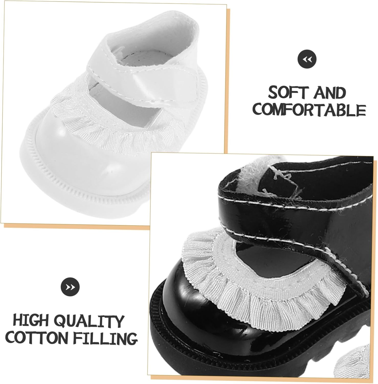 Design: queste mini scarpe hanno dettagli in pizzo e sono quindi accessori di scarpe in miniatura per l'abito da bambola. Esaltano lo stile di ogni bambola con un tocco di eleganza e tenerezza. Scarpe per bambole, figure giocattolo in miniatura Vestibilità: queste scarpe per bambole forniscono una vestibilità per bambole da 20 cm, assicurano che le scarpe per bambole non cadano facilmente e consentano infinite ore di gioco non-stop, mini ornamenti per scene, mini modelli di scarpe Confezione: include due set di accessori per scarpe per bambole per vestire le tue bambole e arricchire la decorazione della tua mini casa così come le tue routine di gioco quotidiane. Scarpe da bambola, mini scarpe simulate Materiali: Realizzate con materiali, queste scarpe da bambola giocattolo con mini figure offrono una sensazione morbida e realistica - ideali per fornire mini bambole o come collezione di scarpe per bambole appena nate, scarpe rinate, pantofole giocattolo Moda: Ispirate all'aspetto delle celebrità, queste scarpe in miniatura stimolano la creatività e le rendono fantastici accessori per bambole e scarpe da vestire per ragazze che si divertono a raccontare storie. scarpe per bambole rinate e scarpe per neonati