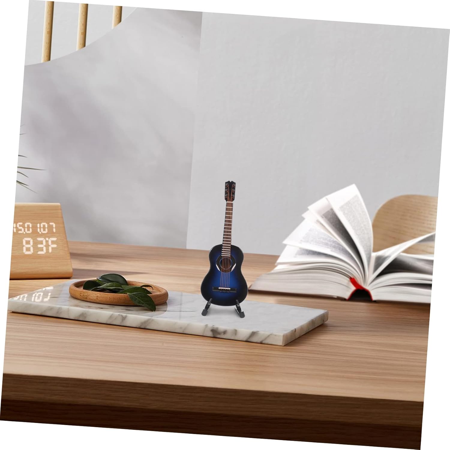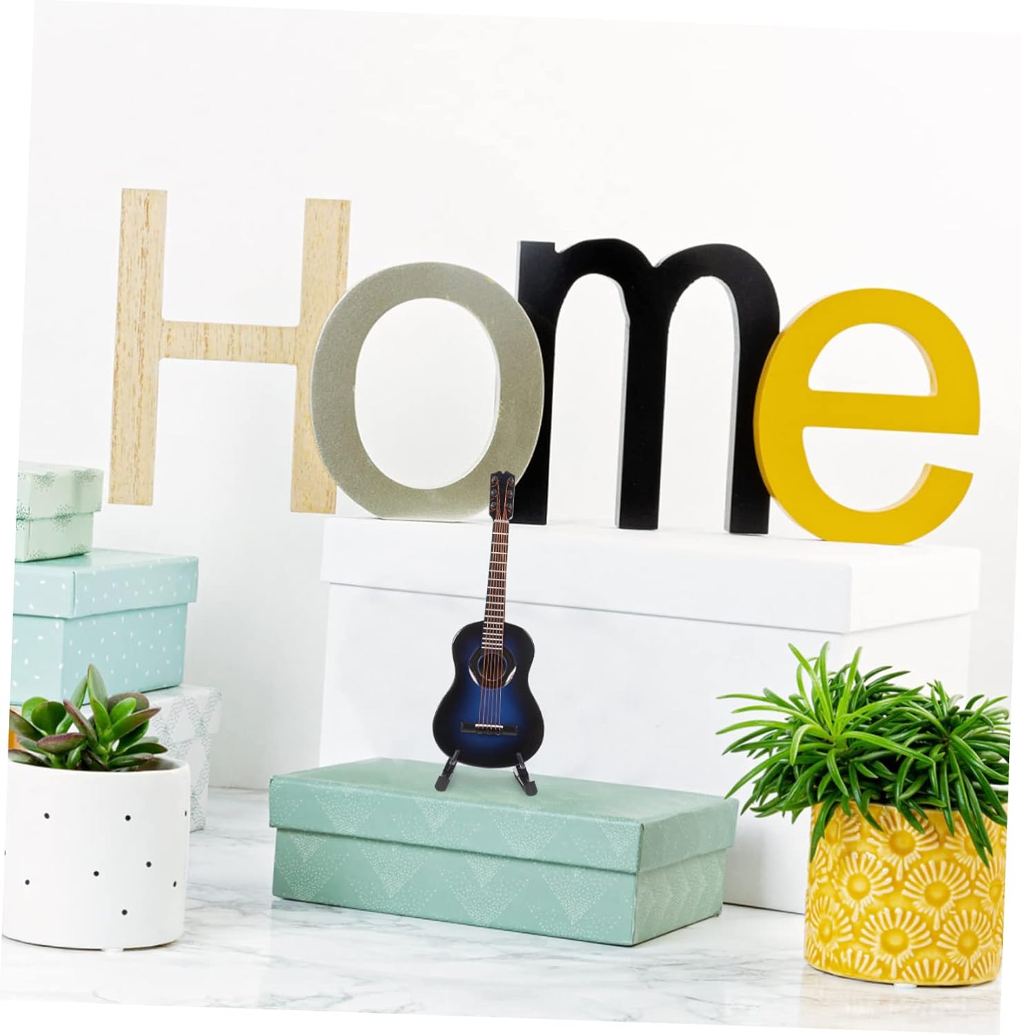 Chitarra unica: con il suo design unico e dettagli meravigliosi, conquisterà bene il tuo amore e ti offrirà una buona , decorazione della chitarra. Mini : la chitarra in legno è di dimensioni compatte, leggera, facile e comoda da trasportare e riporre quando non utilizzata senza alcuno sforzo, miniature. Ornamento da tavolo: struttura semplice, facile da usare, adatto per la decorazione e l'esposizione nella casa delle bambole, puoi usarlo con sicurezza, decorazione per chitarra in legno in miniatura. Puntello modello di chitarra: può essere meraviglioso e una buona scelta per i tuoi amici, a loro piacerà moltissimo, i mini giocattoli più piccoli del mondo. Giocattolo per chitarra per bambini: l'adorabile design della chitarra lo rende più attraente e aggiungerà un'atmosfera piacevole tuo ornamento da scrivania, modello di chitarra in miniatura.
