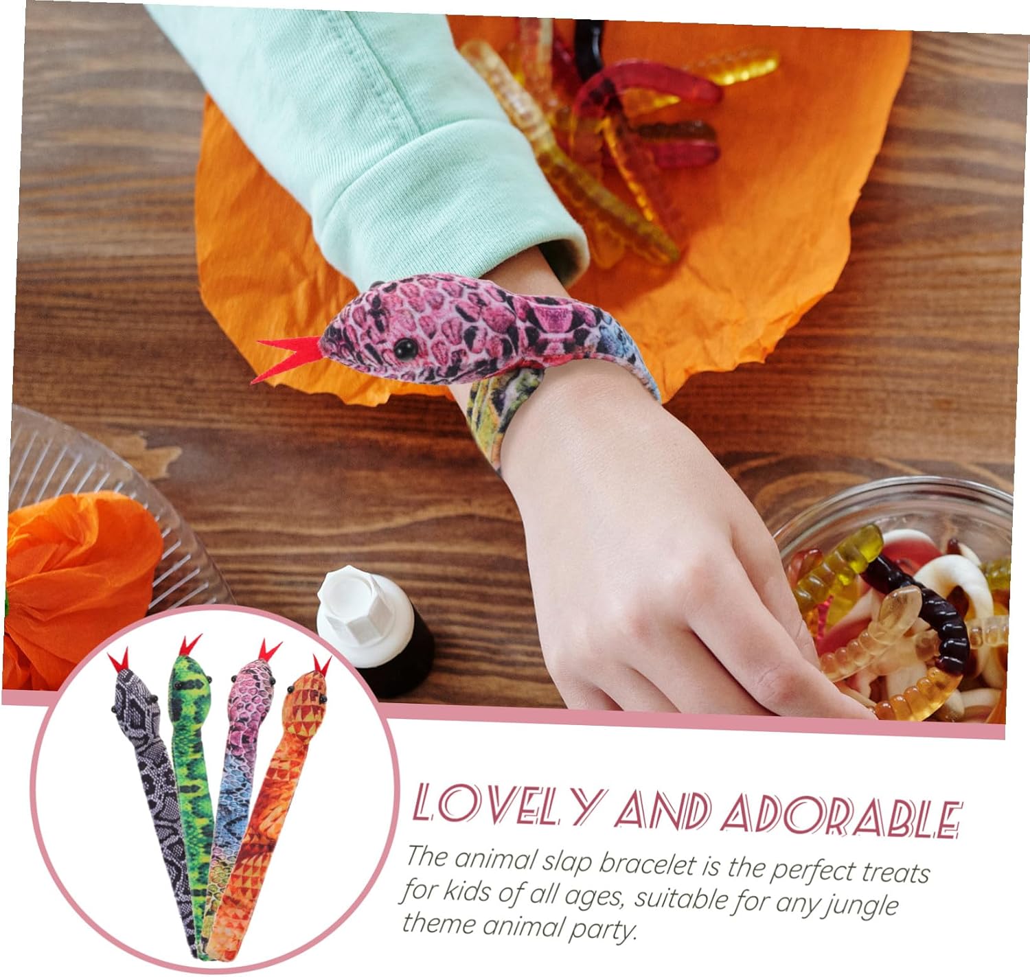 dei pacchetti 4 x Braccialetto Slap Caratteristiche -Informazioni sul prodotto:Giocattoli da polso -Dimensioni: braccialetti a forma di serpente 27,00X4,00X3,00 cm/10,61X1,57X1,18 pollici -Colore: giocattolo per di colori assortiti -Materiale: grazioso giocattolo in stoffa - Il braccialetto con animali è adatto a di tutte le età, adatto a tutti i con tema giungla. - Ottima fattura, massima attenzione a ogni dettaglio per conferire a questo braccialetto a forma di serpente imbottito un aspetto adorabile e accattivante. - Il braccialetto schiaffo è adorabile per le bambine che per i , è sicuro da indossare per i ed è abbastanza pratico da poter essere utilizzato con i braccialetti a scatto a forma di serpente. - Braccialetto a forma di animale, ottimo come bomboniera, come riempitivo per le borse delle feste scolastiche, come premio per le attività ludiche e molto altro ancora. Braccialetto a forma di serpente per . - Realizzato in tessuto, il braccialetto a forma di serpente è delicato sulla pelle, più morbido e confortevole al . Informazioni sulle merci Peluche serpente di peluche Il braccialetto schiaffo di peluche può essere un buon scherzo alla festa. Braccialetto a scatto con serpente di peluche L'eccellente processo di produzione lo rende brillante nel colore, nell'aspetto e nella buona decorazione. Braccialetto schiaffo di giocattoli Realizzato in, comodo e resistente e delicato sulla pelle