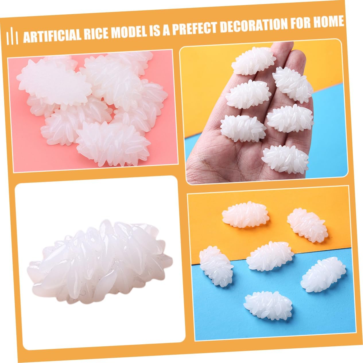Ornamenti a forma di riso finto: caratteristica con una superficie di riso realistica, splendidamente dettagliata e sembra più lucida del riso. Ornamenti realistici del modello di riso: per la decorazione del ristorante dell'hotel della cucina di casa, spettacolo di negozi di mercato, giocattoli per giochi con il cibo, oggetti di scena fotografici. Riso finto decorativo: può anche servire come ornamento da scrivania con questo modello di riso realistico e delicato. ottimo per spettacoli, giochi e oggetti fotografici, decorativi e realistici. Ornamenti di riso artificiale: modello di riso altamente simulato per forniture di oggetti di scena per fotografie di scene di cibo, dall'aspetto realistico. Modelli di riso simulati: modello di riso realistico e realistico, l'ornamento del modello di riso è un ottimo supporto educativo per le persone.