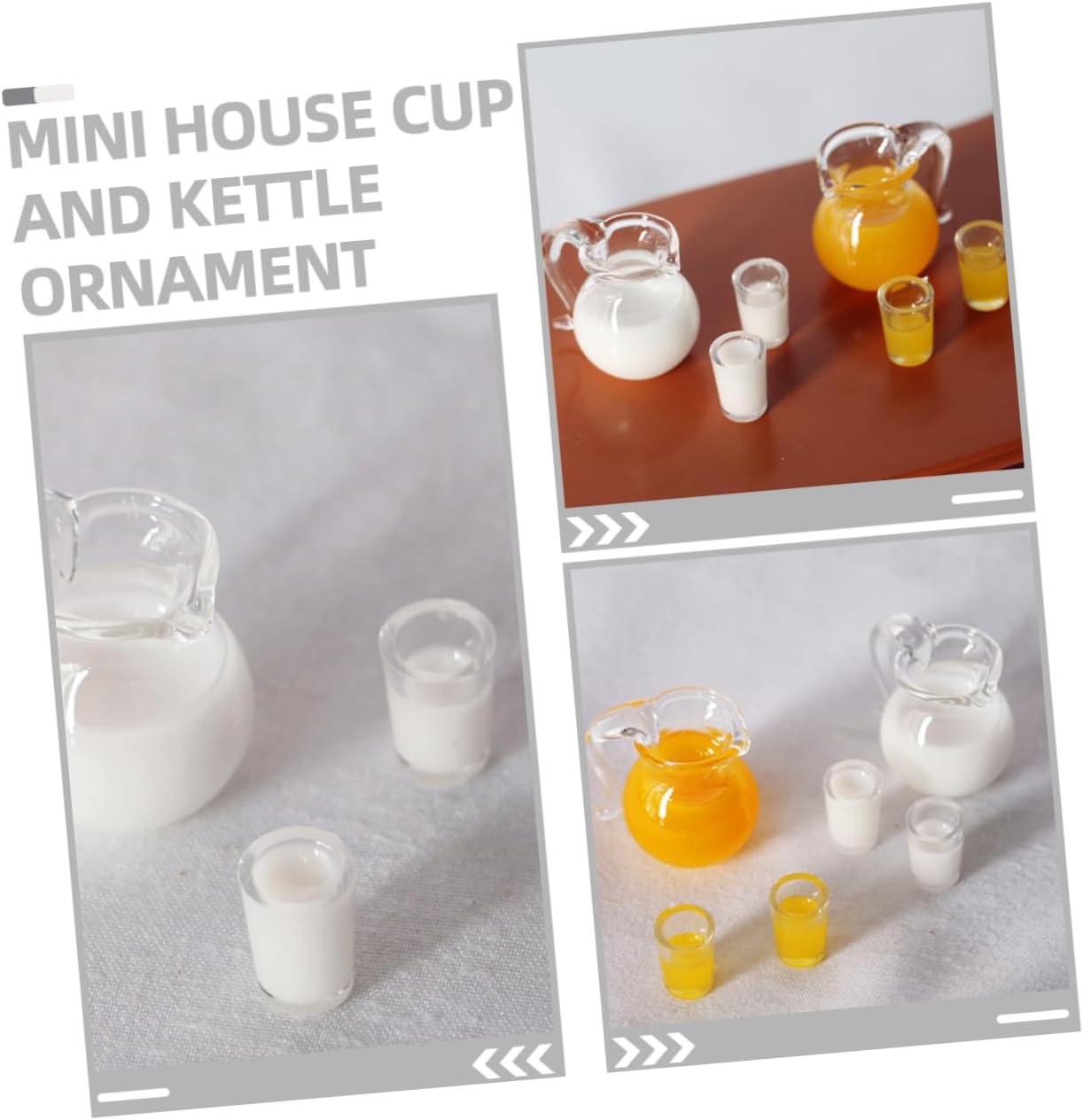 Oggetto di scena: speciale progettato per mini case, che crea un'atmosfera divertente e realistica, che è anche una scelta adatta, mini tazza. Tazza per casa delle bambole: progettata specificamente per scene in miniatura, questi accessori sono incredibilmente realistici e adorabili, tazza per il latte. Oggetti di scena finti per la cucina: che tratti di un compleanno o di un matrimonio, questo set aggiunge un tocco di fascino alla tua casa delle bambole o all'ornamento della casa delle bambole. Arredamento della casa delle bambole: piccolo e compatto, realistico, decorativo e pratico, ottimo per aggiungere un'atmosfera di vita alla tua mini casa, elegante e adorabile, succo in miniatura. Accessori per giochi di finzione: il mini bollitore e l'ornamento della tazza sono realizzati in materiale di resina con lavorazione delicata e buon effetto decorativo, brocca per casa delle bambole.