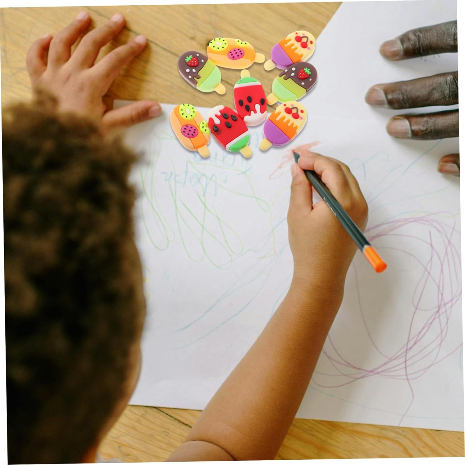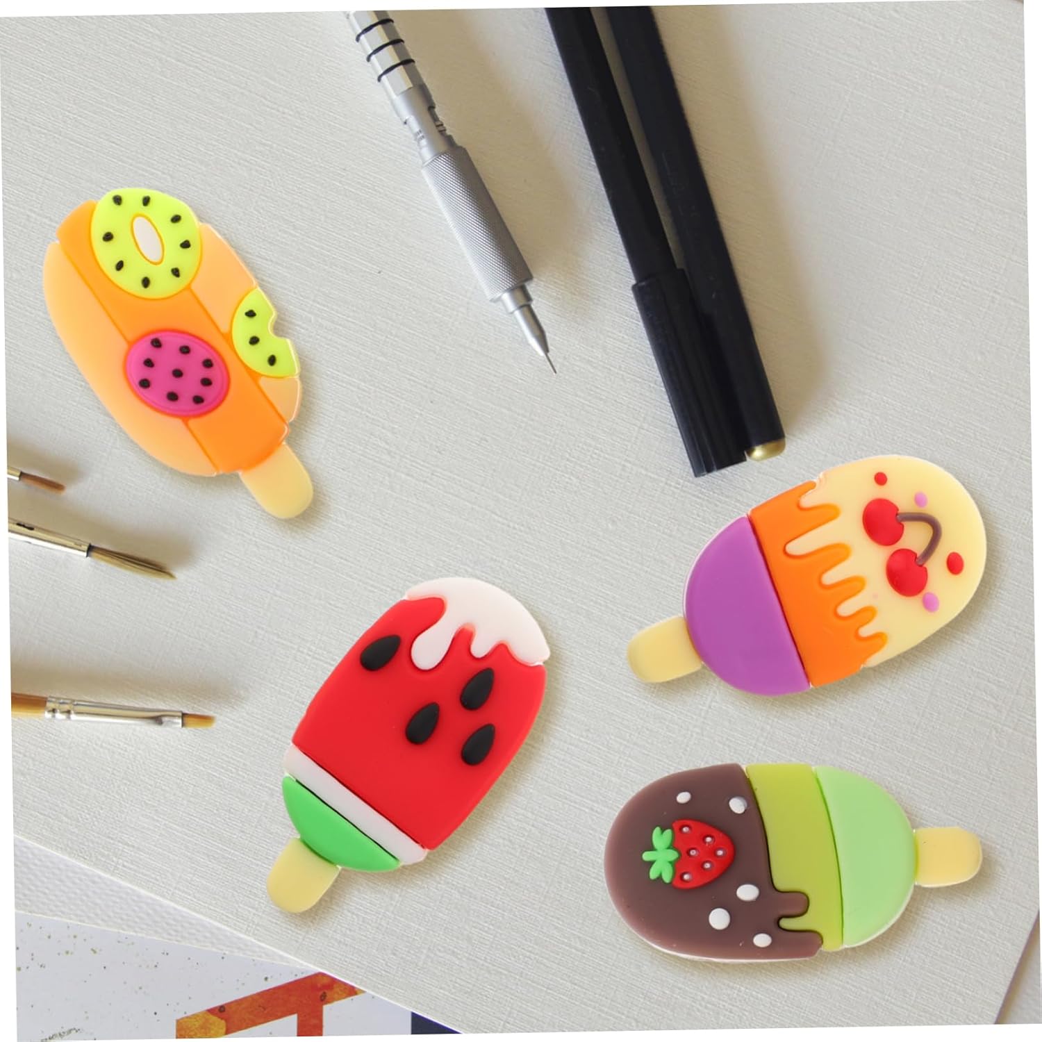Design estivo creativo: queste gomme presentano un esclusivo design a forma di gelato estivo, che le rende un'aggiunta divertente e creativa a qualsiasi collezione di cancelleria Simpatica forma di ghiacciolo alla frutta: le adorabili forme di ghiacciolo alla frutta distinguono, aggiungendo un tocco di personalità e fascino alle tue forniture scolastiche Adatte come souvenir e premi per feste: ideali per l'uso come bomboniere o premi, queste gomme delizieranno sicuramente i bambini e renderanno qualsiasi evento più speciale Vivaci e colorate: con una varietà di vivaci e allegri, queste gomme portano divertimento ed energia in qualsiasi classe o ufficio Compatte e portatili: piccole e facili da trasportare, queste gomme sono comode per l'uso in movimento e facili da riporre in astucci o borse