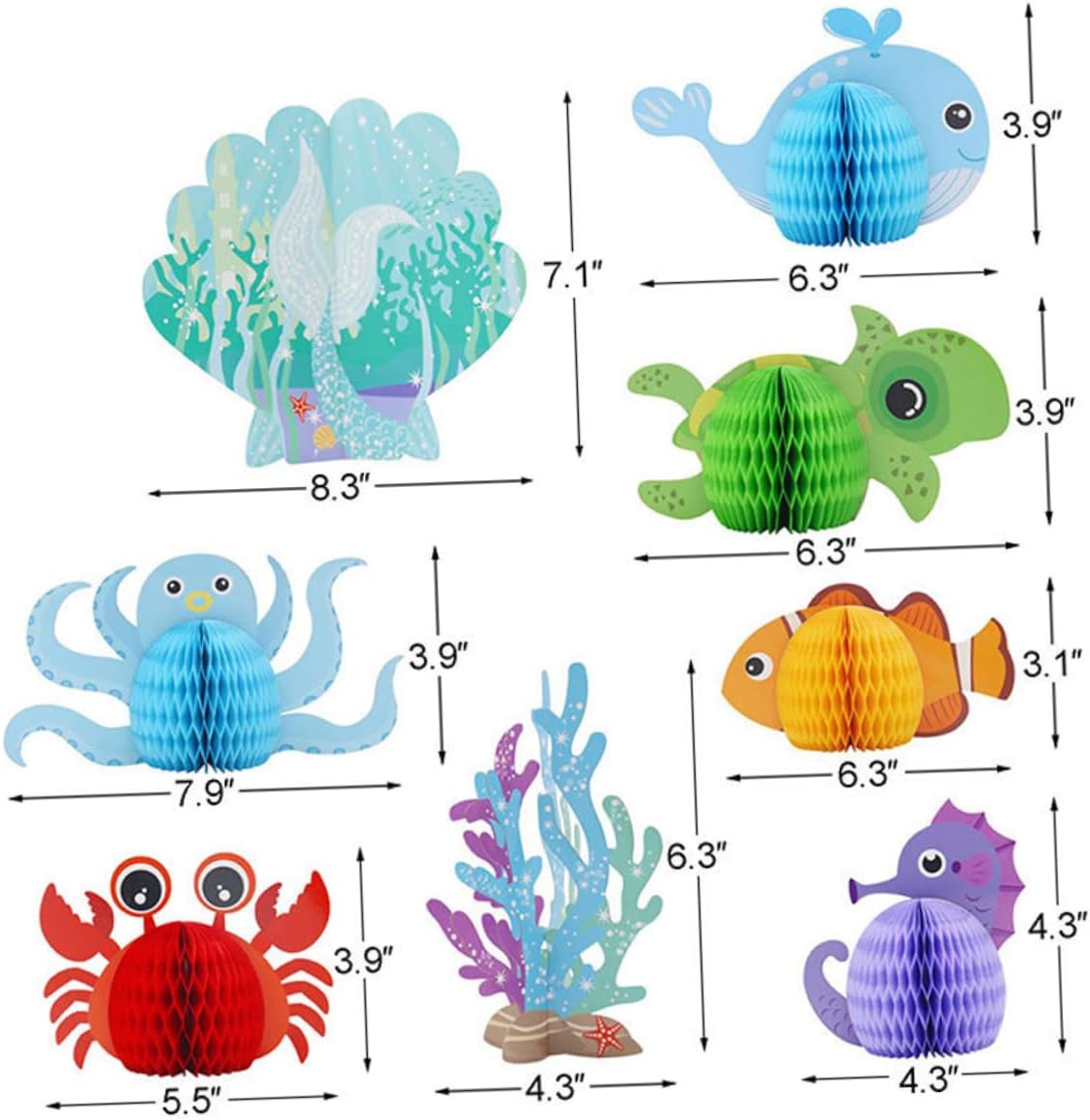 Lavoretto con carta di compleanno: tridimensionali e adorabili, i centrotavola a nido d'ape sono facili da aprire e chiudere, palline di compleanno a nido d'ape. Oceano: fatto di carta per un uso prolungato, non facile da sbiadire, facile da riporre e piegare, accessorio per feste di compleanno. Decorazione di compleanno: insegnamento dei bambini, sviluppo dell'intelligenza e del pensiero, può essere utilizzato anche come giocattolo, decorazione, oceano e mare. Decorazione di compleanno per animali oceanici: può anche essere una buona scelta e decorazione per il compleanno dei tuoi bambini, a loro piaceranno molto questi giocattoli, ornamenti a tema marino. Decorazione con palline a nido d'ape: questi giocattoli di animali marini sono buoni giocattoli educativi per bambini, divertenti e pratici, decorazioni a nido d'ape per animali.