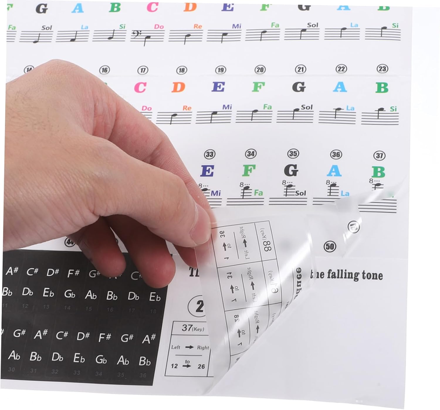Adesivi per note di pianoforte - Gli adesivi per tastiera consentono una facile applicazione e rimozione, offrendo un'esperienza senza problemi, Adesivi per pianoforte Adesivi per chiavi di pianoforte - L'adesivo per note di pianoforte è facile da attaccare e garantisce che non rimangano residui sui tasti. Adesivi rimovibili per note sulla tastiera del pianoforte Adesivi con lettere per tastiera - compatibili con tastiere a 88/76/61/54/37 tasti, che li rendono adatti per un'ampia gamma di adesivi per tastiera per principianti Adesivi con lettere per tastiera - l'adesivo per pianoforte è adatto per l'uso su pianoforti a 88 tasti e tastiere elettroniche a 61 tasti, nonché adesivi per pianoforte per principianti Etichette per tasti di pianoforte - Gli adesivi per tastiera migliorano l'esperienza di suonare il pianoforte, aiutano gli utenti a identificare rapidamente le melodie, guida musicale per pianoforte rimovibile