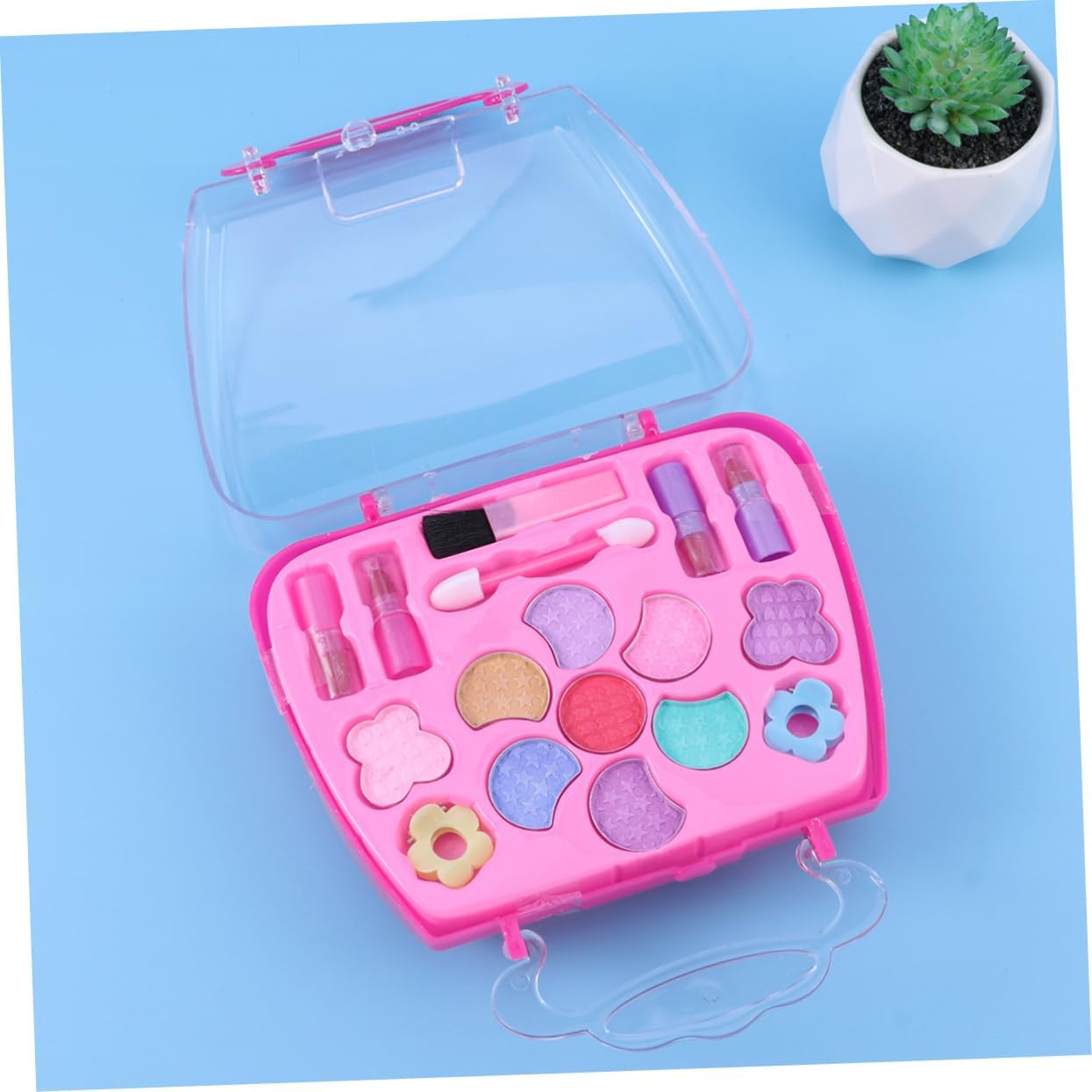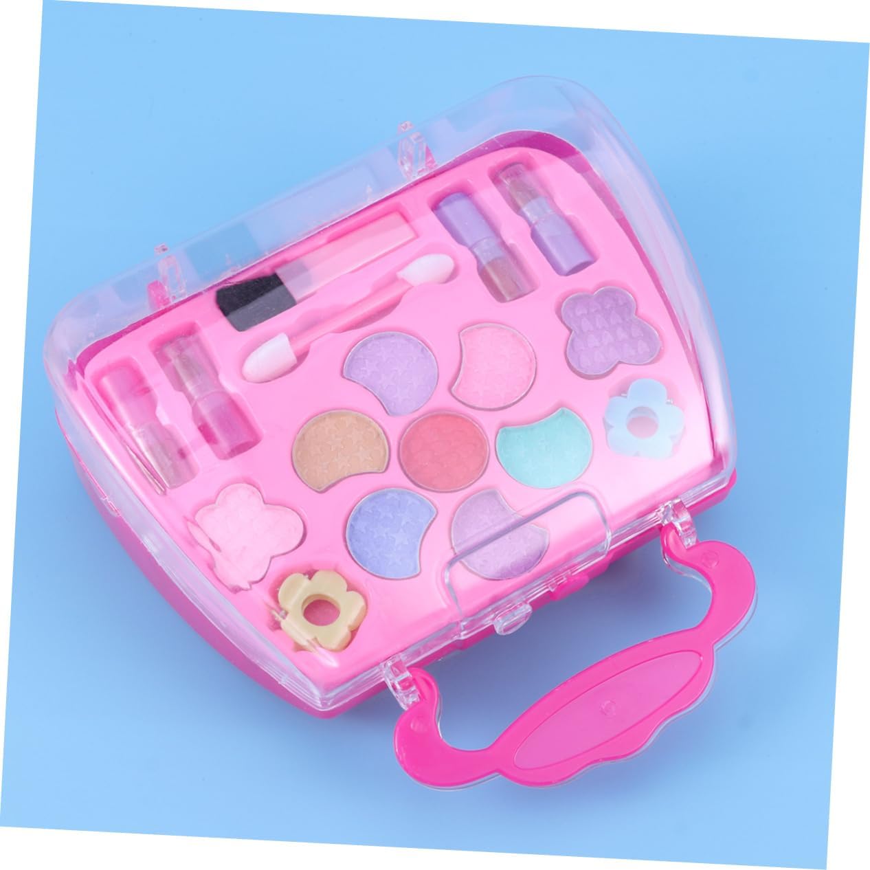 I cosmetici fingono giocattoli: con una custodia per il trasporto, facile da riporre e imballare, adatto per giocare all'asilo, a casa o per ammazzare il tempo in macchina durante il viaggio. Giocattoli cosmetici per ragazze: tante opzioni di colore che terranno occupate le bambine per ore di divertimento. Kit trucco per bambini per ragazza: tutti gli articoli hanno un design realistico, realizzati in plastica e sicuri per i bambini. Trucco giocattolo da travestire: è abbastanza piccolo da poter essere messo nella borsa, i bambini possono portarlo in qualsiasi momento. Custodia per il trucco per bambini: regalo perfetto per le tue ragazze nel loro compleanno, festa dei bambini o altri giorni speciali.