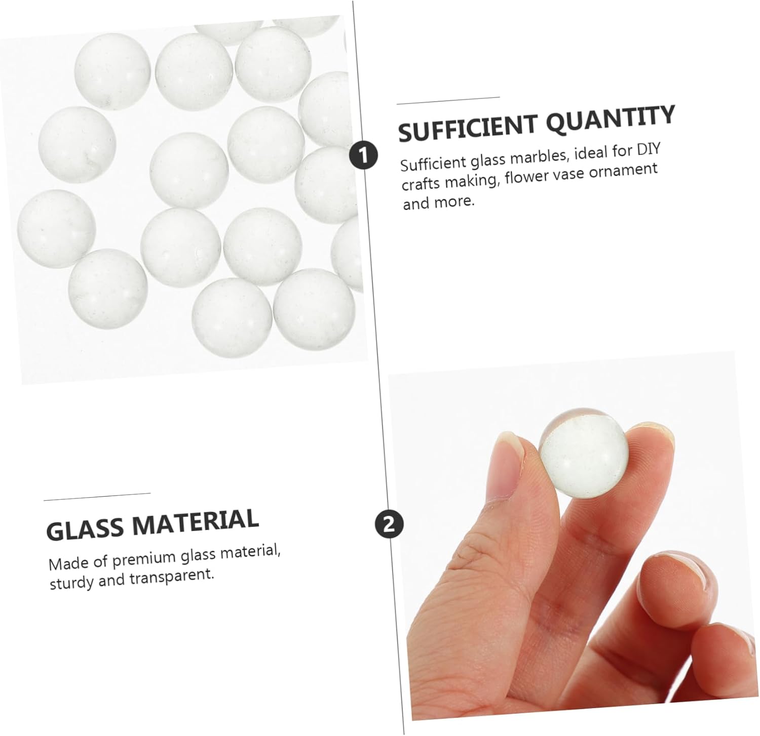 Biglie grandi: inoltre, possono essere utilizzate come meraviglioso regalo di inaugurazione della casa per i tuoi amici che amano l'artigianato. Sassi di vetro - biglie di vetro trasparente - decorano il tuo acquario e mantengono l'acqua pulita, garantendo che non vi siano condizioni pericolose per la vita dei tuoi pesci. Perline di fiori in vetro: perfette per tutti i tipi di progetti artigianali. buono per composizioni floreali, matrimoni, decorazioni per feste. Piccole perle di vetro: possono conferire al tuo vaso un aspetto attraente e sono un accessorio per la decorazione d'interni. Riempitivo per vasi trasparente: sono solidi e pesanti, a differenza delle pietre artificiali in plastica rimangono immerse nell'acqua e non galleggiano su di essa.