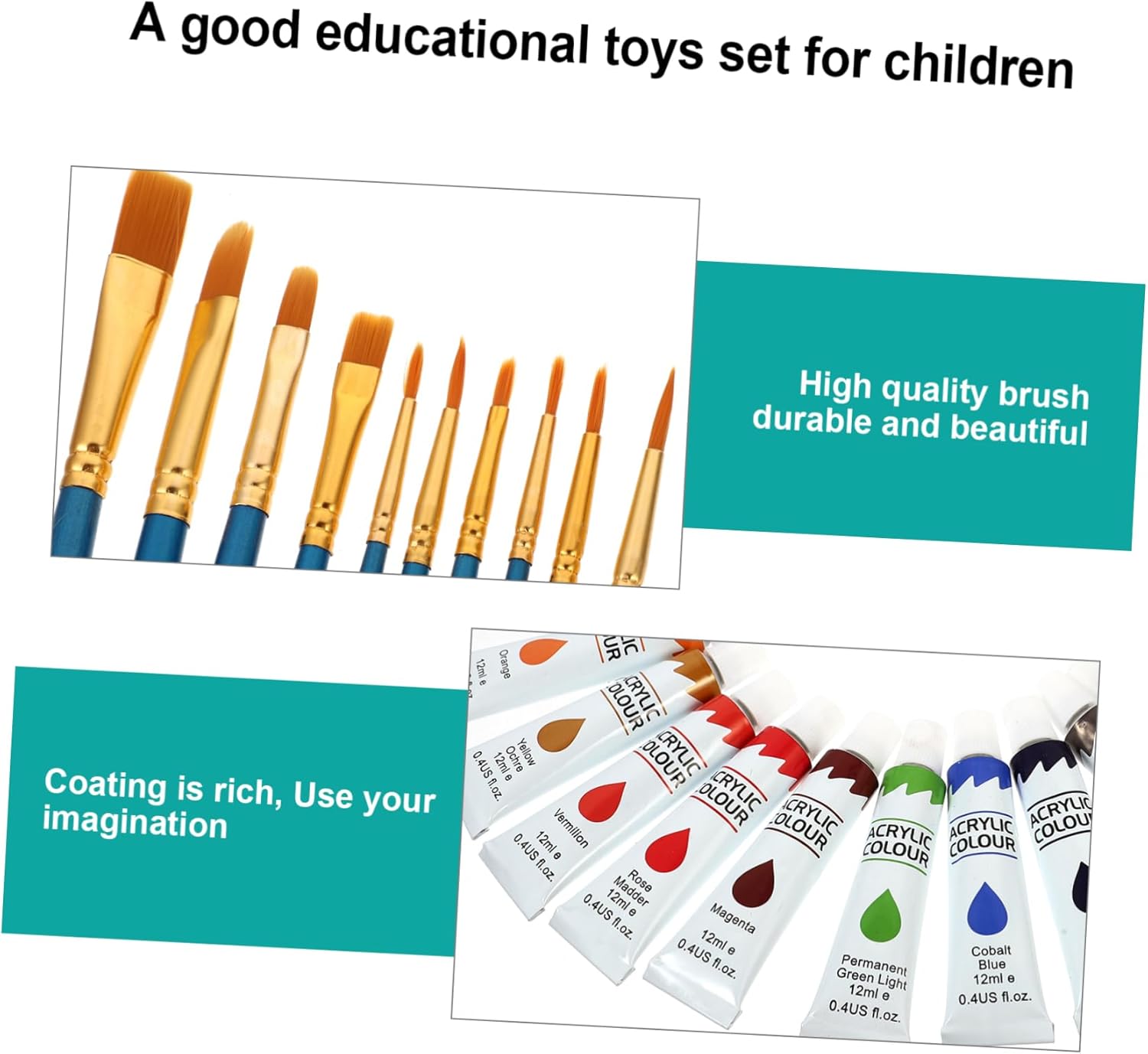 Tavolozze di colori: il set di pennelli aiuterà a incoraggiare l'immaginazione e la creatività di . Vassoio per pigmenti: è fatto di e , rendendoli e . Mini pennello da pittura: realizzato con , robusto, sicuro e igienico. Strumento di disegno per la scuola : un pratico giocattolo per la educazione per coltivare la creatività e l'immaginazione bambini. Divertente pennello da pittura: migliora l'abilità pratica bambini e rafforza la relazione con i genitori.