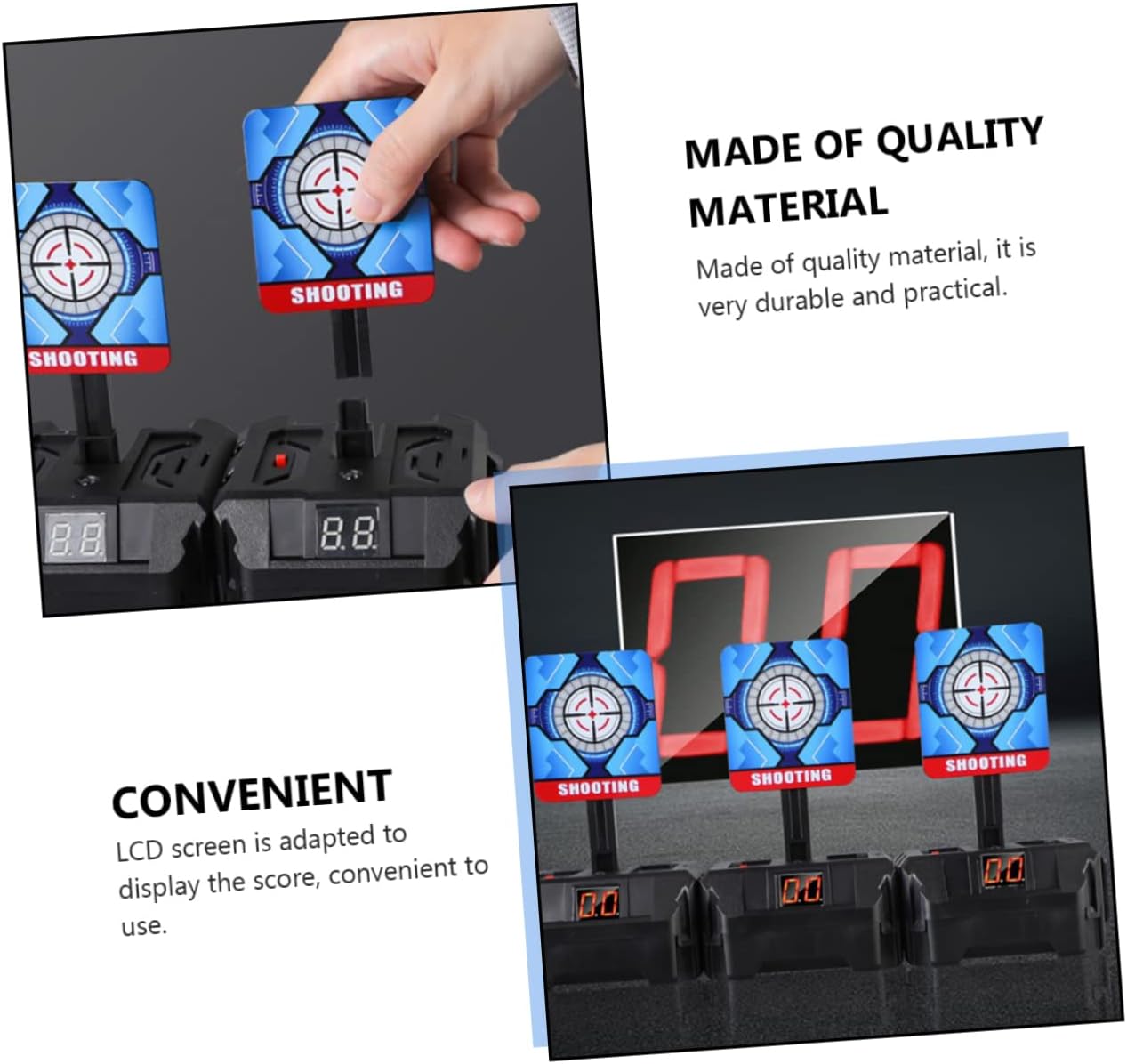 Obiettivi con ripristino automatico: non solo puoi divertirti ad allenarti, ma puoi anche migliorare le tue abilità e la tua precisione, obiettivi per Elettrico: di reset automatico incorporato, rimbalzo automatico, ottimo effetto sonoro, facile da montare, obiettivi Pratica: esercita la capacità di coordinazione dei movimenti oculari dei e goditi la gioia dei giochi, obiettivi con punteggio automatico Elettronico: è un gioco fantastico per ragazzi, ragazze e adolescenti per feste di compleanno, riunioni di famiglia, natale, halloween o vacanze, obiettivi di pratica Bersagli elettrici per: questo dispositivo elettronico promuove la comunicazione genitore-figlio e allena le capacità dei , il che può essere un per loro, per la pratica dei bersagli