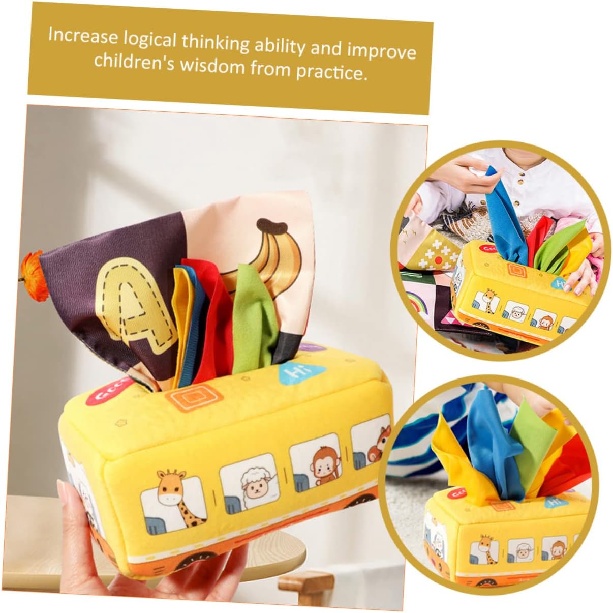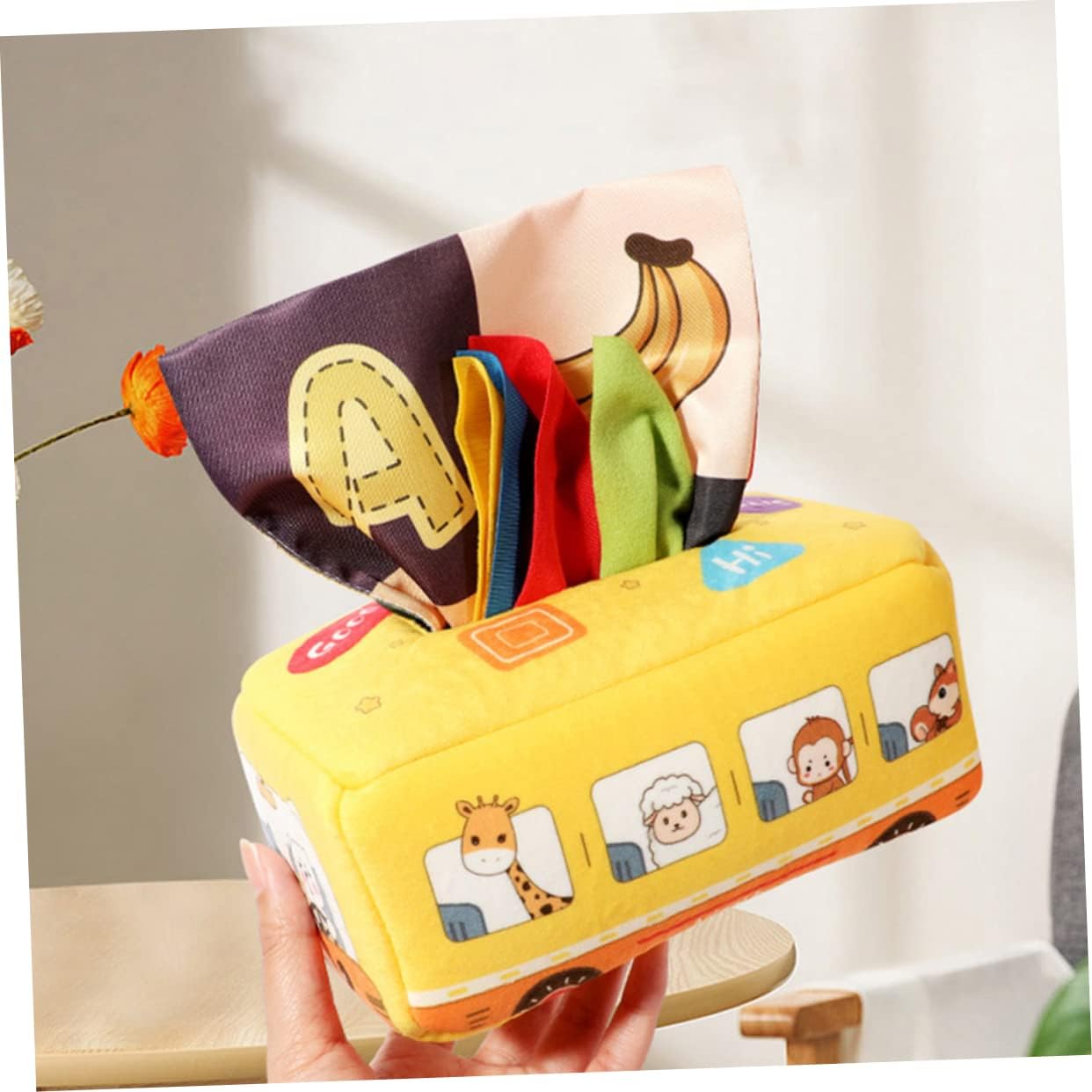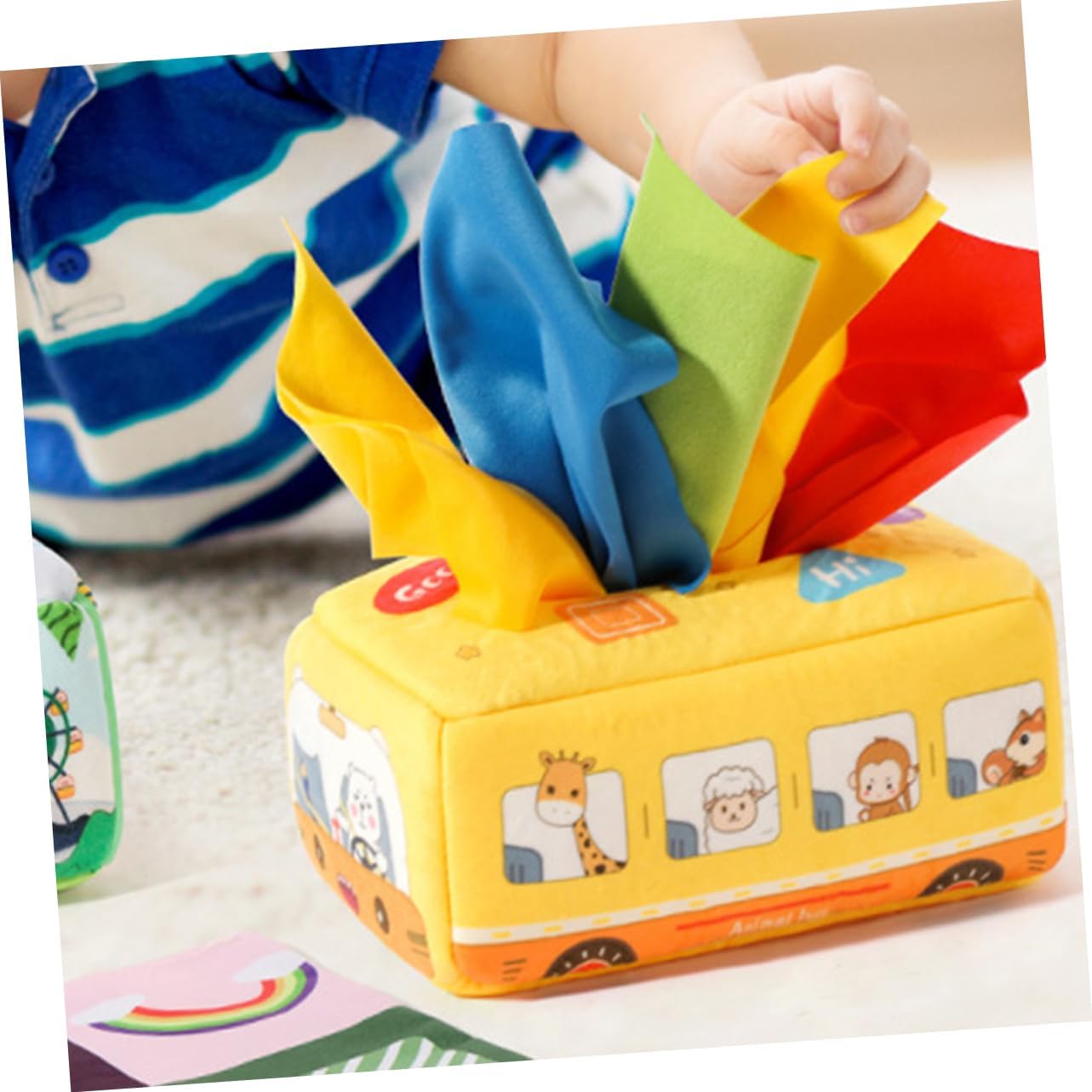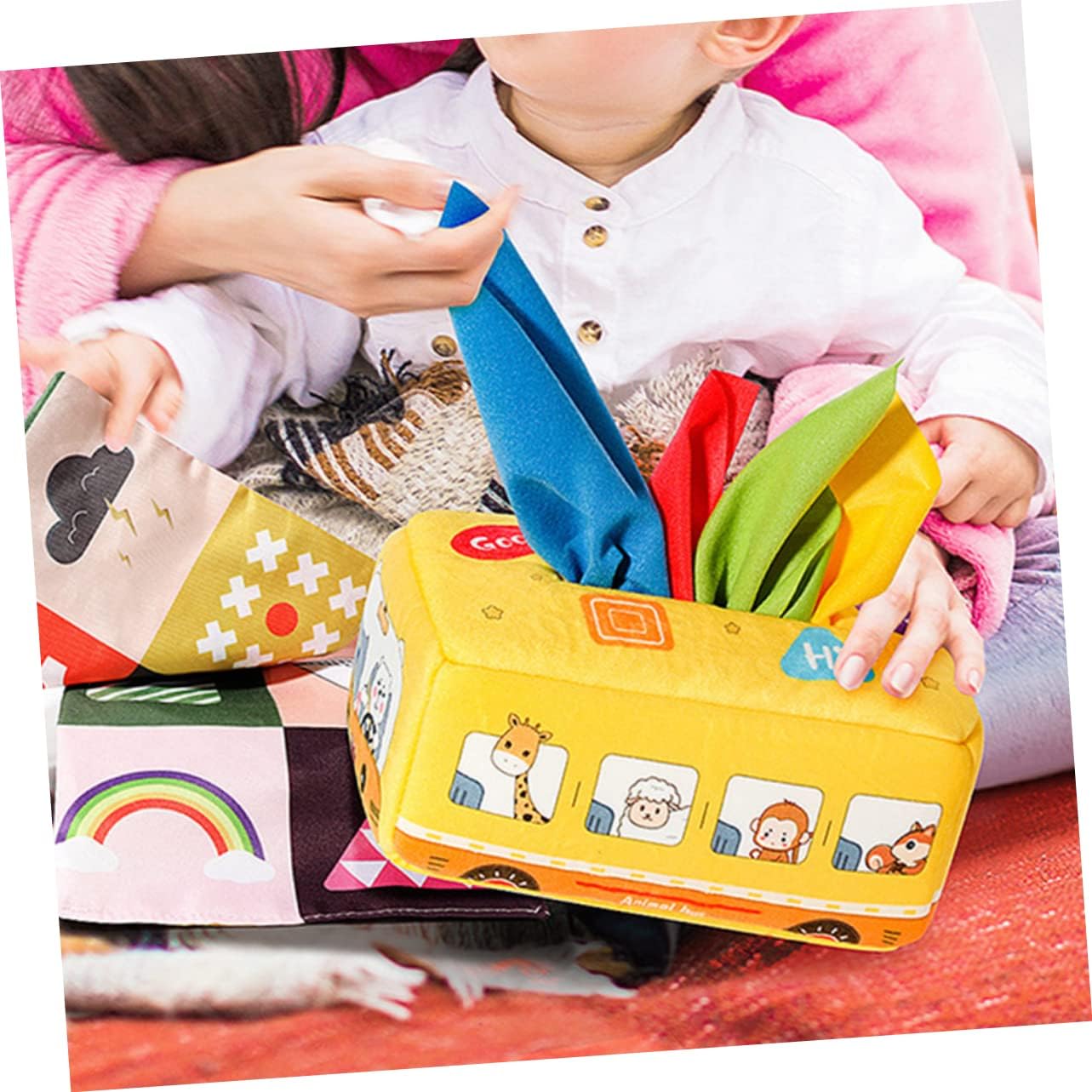 Giocattoli sensoriali Montessori - non solo possono renderti felice, ma anche promuovere lo sviluppo dell'intelligenza, -giocattoli sensoriali Montessori- - lavabili e un buon modo per allenare le capacità motorie del bambino, per tirare i fazzoletti, giocattoli educativi per i più piccoli - i giocattoli in tessuto sono abbastanza grandi da poter essere afferrati e tirati dalle piccole mani. L'apertura è abbastanza grande per estrarre e rimettere facilmente il tessuto. Sensoriale per i più piccoli Montessori per neonati - Il colore brillante e i motivi affascinanti della scatola di fazzoletti possono attirare l'attenzione del bambino, Montessori Montessori - Realizzata con materiali sicuri e delicati sulla pelle, i genitori possono lasciare che i loro bambini, Montessori
