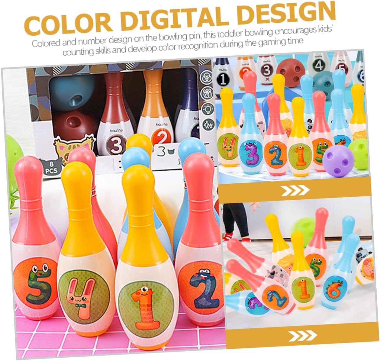 Giocattoli per bambini: design colorato e numerico sul birillo da bowling, questo bowling per bambini promuove le capacità di conteggio e sviluppa il riconoscimento dei colori durante il gioco, giocattoli per bambini, palloni sportivi per bambini piccoli: una scelta eccellente per promuovere l'abilità di osservazione e le abilità pratiche dei bambini e aiuta anche a rendere i giocattoli da bowling più divertenti per i giochi dei bambini: il set da bowling è leggero, può essere facilmente portato fuori, sia all'interno che all'esterno, nel parco, a scuola o in altri campi da gioco, bowling: ottimo gioco per famiglie genitori-figli, giochi di società, viaggi gioco, gioco di sport all'aria aperta, questo set da bowling al coperto soddisfa le tue esigenze, -palle da bowling: questo set di giocattoli da bowling può aiutare i bambini ad apprendere le regole del bowling e ad allenare le loro abilità sportive, bowling per bambini