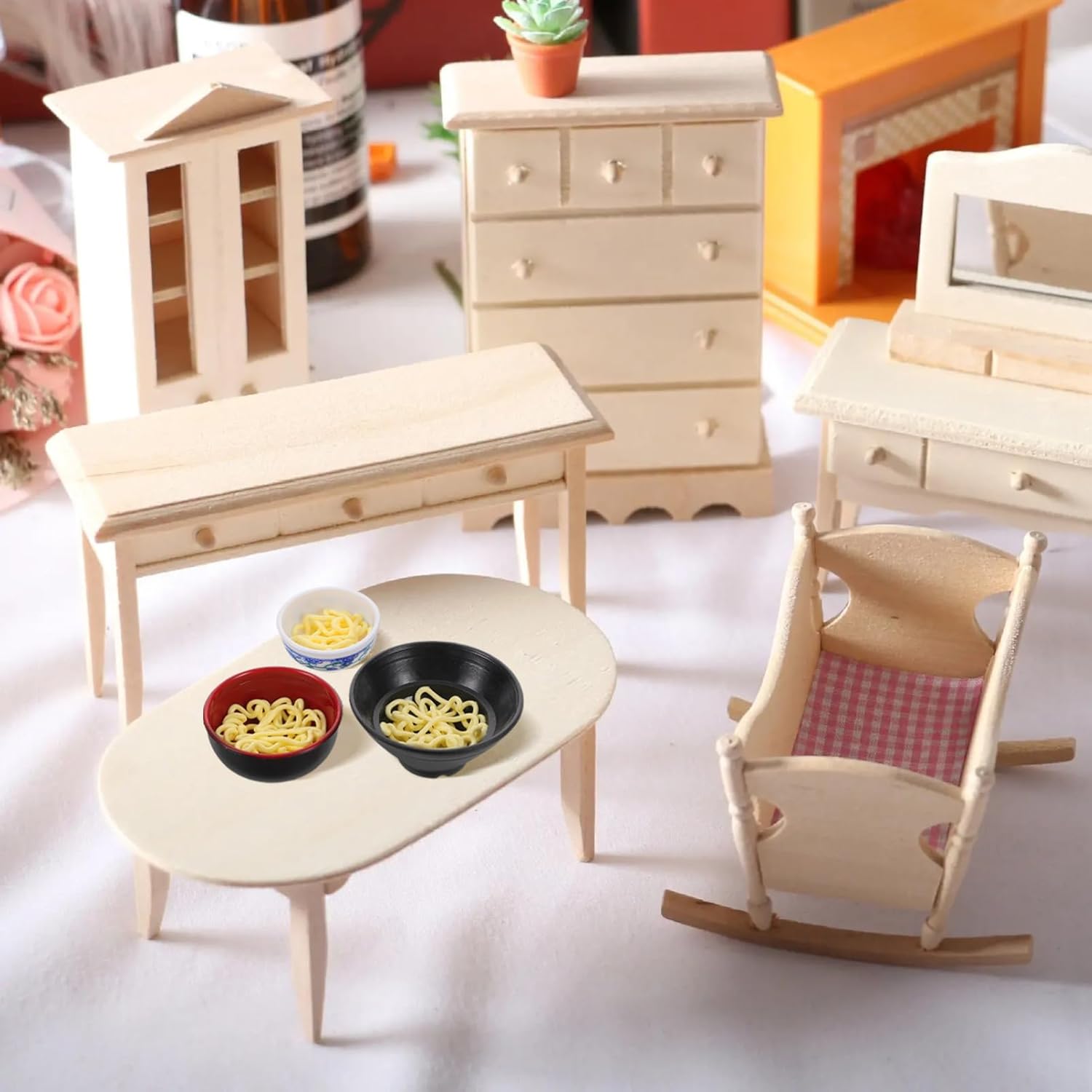 Design realistico: la ciotola di noodle realistica - fornisce un'autentica esperienza di preparazione del ramen e migliora il tuo gioco fantasioso Accessorio fai da te per casa delle bambole: completa l'allestimento della casa delle bambole e aggiunge un ulteriore livello di divertimento e creatività al gioco Set da gioco con il cibo: include cibi simulati e materiali per noodle per creare i tuoi piatti di ramen ed esplorare la creatività culinaria Creativo: ti incoraggia a sviluppare la tua creatività e le tue capacità motorie attraverso l'interazione familiare del gioco: ideale per il tempo libero in famiglia, genitorialità più forte e divertimento collaborativo