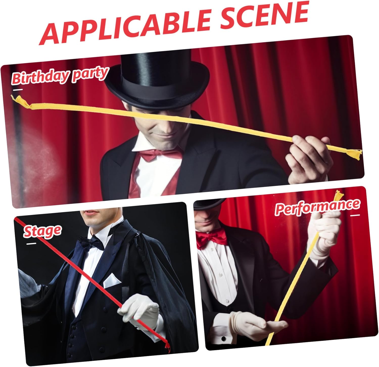 Oggetti di scena interessanti: quantità sufficiente per l'uso quotidiano, o pratici e delicati per coloro che amano i giochi di trucchi e le forniture per feste Corda rigida flessibile: con buona fattura, i puntelli della corda hanno una superficie e bordi lisci, sicuri da usare, giocattoli espedienti per Corde per esercitarsi: realizzate in materiale di stoffa, la corda per trucchi è abbastanza robusta, non facile da deformare e può essere utilizzata per molto tempo, corda per scherzi Corde per trucchi ravvicinati per : lascia che i giochi di trucchi siano divertenti e interessanti, per portare sia gli artisti che il pubblico molto divertenti, corde espedienti Giocattoli truccati: questo trucco consente alle corde di trasformarsi nella stessa lunghezza o di tornare alla loro lunghezza originale, giocattoli per