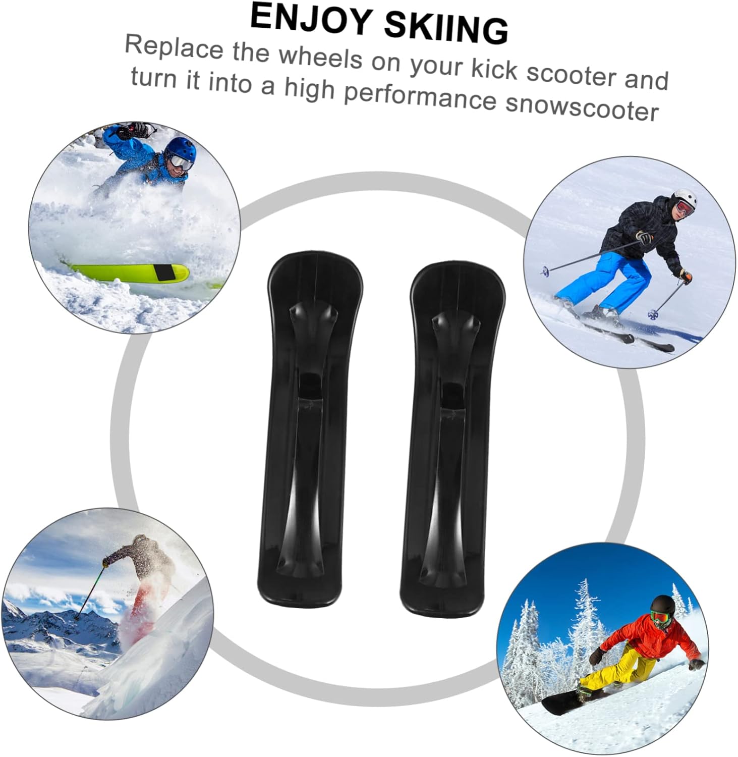 Sci per scooter da slitta da neve: l'attacco per sci ti permette di guidare e scivolare sulla neve in caso di neve, tavola da slitta pieghevole Sci da scooter: sostituisci le ruote del tuo scooter e trasformalo in uno scooter da neve ad alte prestazioni, uno skateboard da slitta pieghevole. Attacco per sci da neve: il set da sci da neve estende l'equilibrio dell'auto del tuo bambino sulla neve, slitta per scooter da neve, accessori per scooter da sci: realizzato in materiale durevole e resistente all'usura per un uso a lungo termine, slitta a rotelle, tavola a rotelle: lo scooter da neve per far divertire i bambini quest'inverno, giocattolo da sci