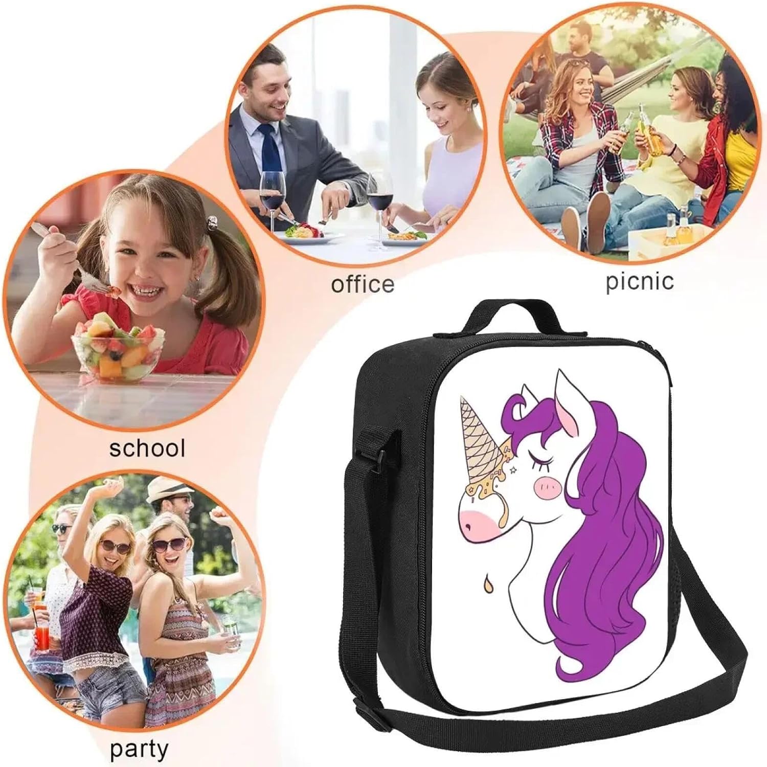 Ice Cream Unicorn Borse per Il Pranzo Isolate Scatole per Borse Termiche Scatola Termica per Il Pranzo Tote Bag per L'Ufficio dei Bambini da Donna