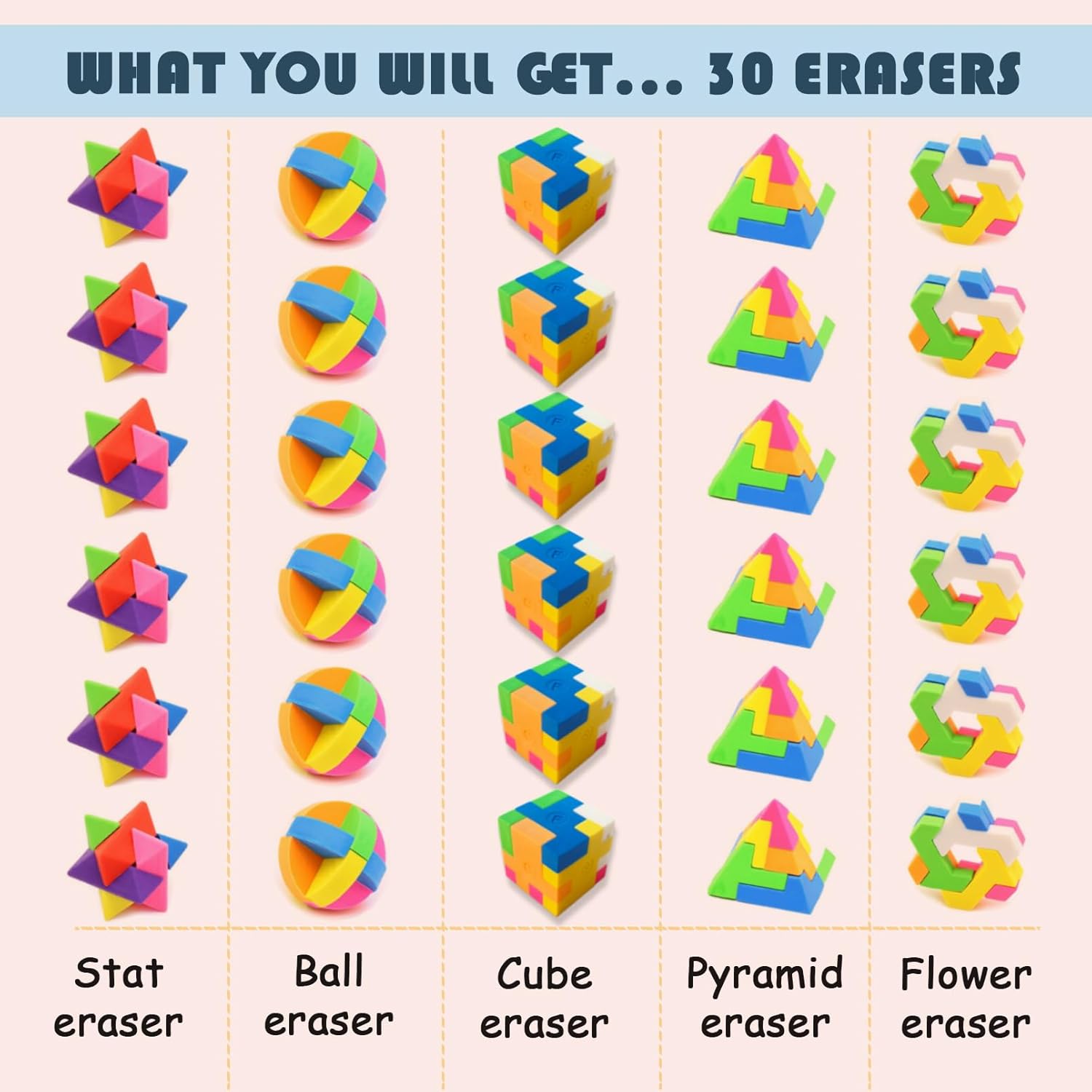 🎁【Gomme da cancellare divertenti】 : è sia una gomme cancellareche un puzzle bambini. Possono essere utilizzati sia come cancelleria scuola che attraverso il processo di smontaggio e montaggio per coltivare l'abilità pratica e la creatività dei bambini. 🎁【Puzzle 3D a colori】: Include 20 pezzi puzzle a colori con gomma in 5 stili diversi tra cui cubi, palline e piramidi, stelle e fiori. 4 di ogni stile, ottimi come gadget bambini o regalini festa per bambini 🎁【Regalini fine festa bambini】: Queste gomme da cancellare per novità sono perfette per regalini compleanno bambini invitati o materiale scolastico, premi, premi in classe e altro ancora. 🎁【Gomma da cancellare per bambini】:Ogni pezzo di gomma è realizzato in materiale TPR , di consistenza morbida, I bambini possono usarlo con sicurezza. 🎁【Garanzia di qualità e servizio】: In caso di domande o insoddisfazione per il prodotto, non esitate a contattarci, otterrete una sostituzione o un rimborso.