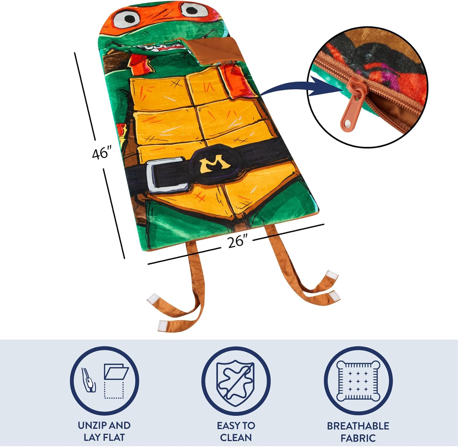 Design: questo sacco a pelo presenta un'adorabile grafica di Ninja Turtles. Il design di questo set di sonno aggiungerà un tocco di colore insieme ai personaggi preferiti del tuo bambino. Tartarughe NINJA: con il suo fantastico design Ninja Turtles, i bambini si divertiranno a qualsiasi pigiama party. Il complemento perfetto per la cameretta dei bambini o la stanza dei giochi. Il regalo perfetto: regala il tuo bambino o qualcuno a te caro con questa borsa per dormire. Questa borsa per dormire sarà il discorso del prossimo pigiama party del tuo bambino! Un ottimo modo per rendere divertenti i pigiama party con questa borsa per dormire Facile manutenzione: questa borsa per dormire è pulita per una facile manutenzione. Materiale in poliestere resistente, facile da mantenere e dura per anni. Dimensioni: la borsa a tracolla misura 147,3 x 66 cm. La dimensione perfetta per bambini dai 3 anni in su. Il sacco a pelo può essere sollevato e disteso per un tappetino o una coperta più grande.