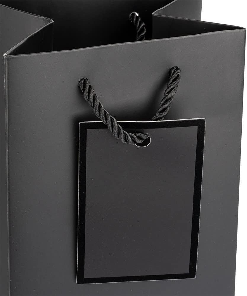 10 eleganti sacchetti regalo per bottiglie Ciascuno ca. 36 cm x 12 cm x 10 cm Cartone robusto da 230 g/m² Con manici in corda e biglietti per scrivere Questi eleganti sacchetti regalo attirano l'attenzione anche senza decorazioni. Se preferisci puoi decorare le borse anche con materiali diversi. Ad esempio, incolla sui sacchetti pietre preziose, nastri decorativi, bordi, motivi 3D o adesivi. Progetta i tuoi sacchetti regalo personalizzati in questo modo e dai libero sfogo alla tua creatività!