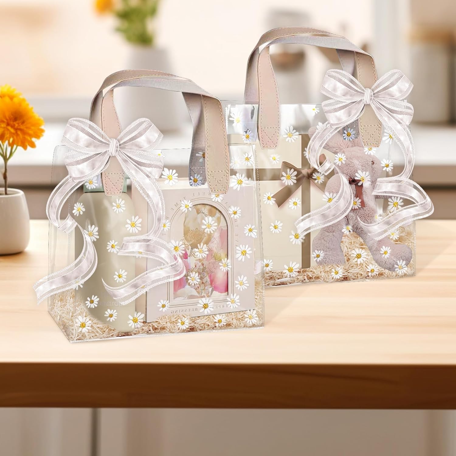 【Contenuto della confezione】 Con 2 borse per confezione sei ben equipaggiato per il tuo prossimo evento. Condividi queste graziose borse con amici e familiari e rendi ogni celebrazione indimenticabile. 【Materiale di alta qualità】 I nostri sacchetti regalo sono realizzati in resistente PVC impermeabile, che garantisce durata e protegge i tuoi regali da polvere e umidità. Facili da pulire, rimangono sempre in perfette condizioni. 【Design Elegante】Con un attraente motivo a margherite e un look elegante e trasparente, queste borse aggiungono un tocco speciale ad ogni occasione. 【Pratico comfort di trasporto】Le maniglie ampie e robuste consentono di trasportare comodamente i sacchetti regalo senza spiacevoli pizzicamenti. Ciò significa che puoi trasportare facilmente i tuoi regali a qualsiasi evento. 【Grande Capacità】Le generose dimensioni di 25 x 22 x 13,5 cm offrono spazio sufficiente per regali, snack e altro. Ideale per feste, matrimoni e occasioni speciali per trasportare tutto ciò di cui hai bisogno con stile.