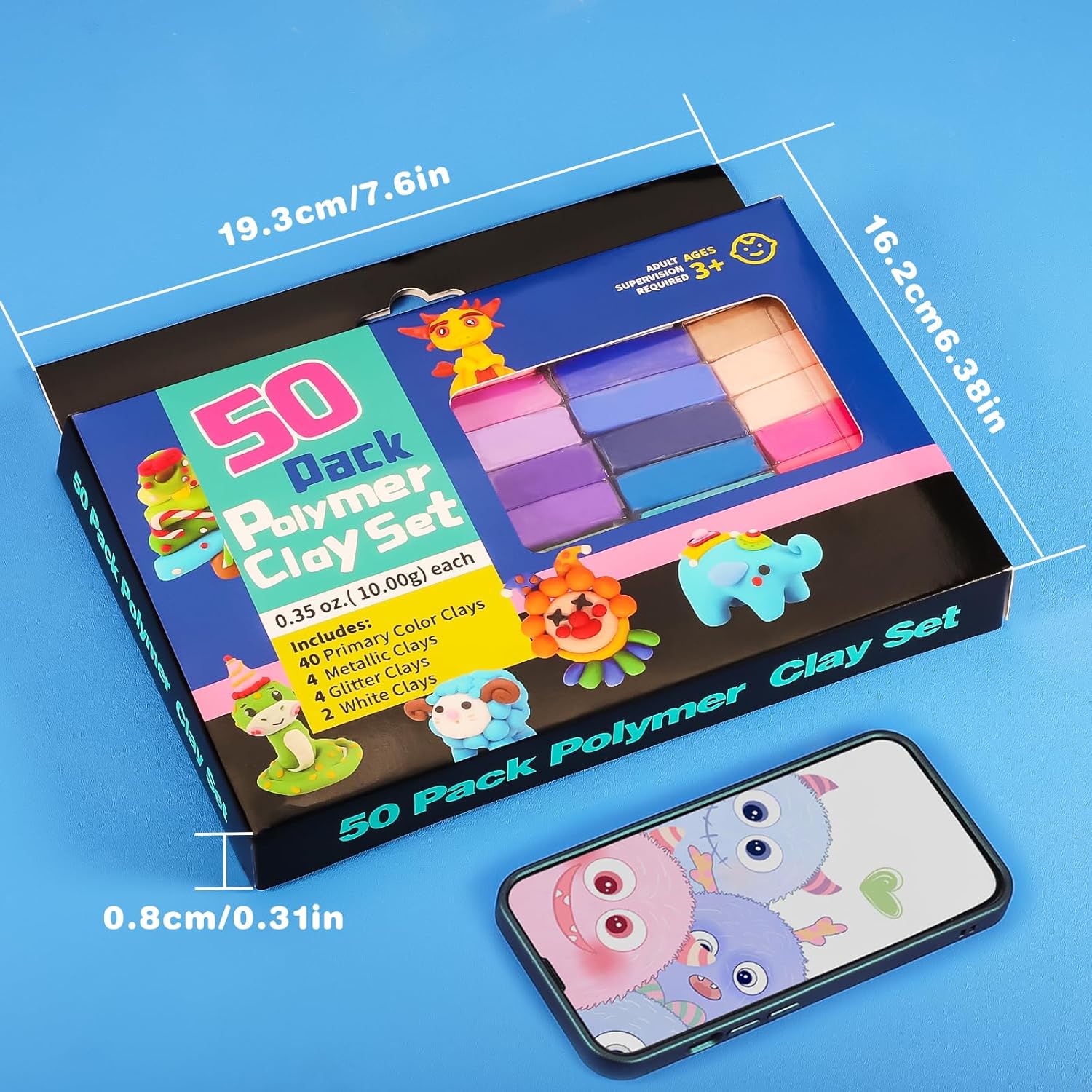 50 colori vivaci per una creatività senza fine - Include 50 blocchi di argilla polimerica (10 g ciascuno), perfetti per scolpire, creare gioielli e realizzare creazioni in miniatura. La formula cotta al forno mantiene i colori vivaci dopo la cottura, ideale per progetti fai da te, regali e materiali artistici. Argilla da modellare per un fai-da-te facile: un'ottima scelta per i creatori di fai-da-te. Sono perfetti per l'arredamento della casa, il design di gioielli, progetti artistici e artigianali. Un'ottima idea regalo per compleanno, laurea, Ringraziamento, Halloween o Natale. In una scatola di cartone colorata per mantenere l'argilla organizzata e trasportabile a casa, a scuola o in viaggio. Sicura e certificata: pasta da modellare adatta a bambini e principianti, atossica per bambini e artisti. Kit di pasta da modellare morbida e facile da modellare, perfetta per miniature, animali, ciondoli e decorazioni fai da te. Metodo di cottura: 1. Cuocere al forno (temperatura consigliata: 135 ℃ e cuocere per 10-15 minuti). 2. Metodo di bollitura (adatto per piccoli lavori da 1/3"). 3. Riscaldatore per asciugacapelli (adatto per piccoli lavori da 1" - 2"). I prodotti in argilla polimerica non sono consigliati o destinati all'uso per contenere o servire cibi o bevande. Kit di argilla polimerica iFergoo - Non esitare a contattarci se hai commenti o suggerimenti sui nostri prodotti o servizi.