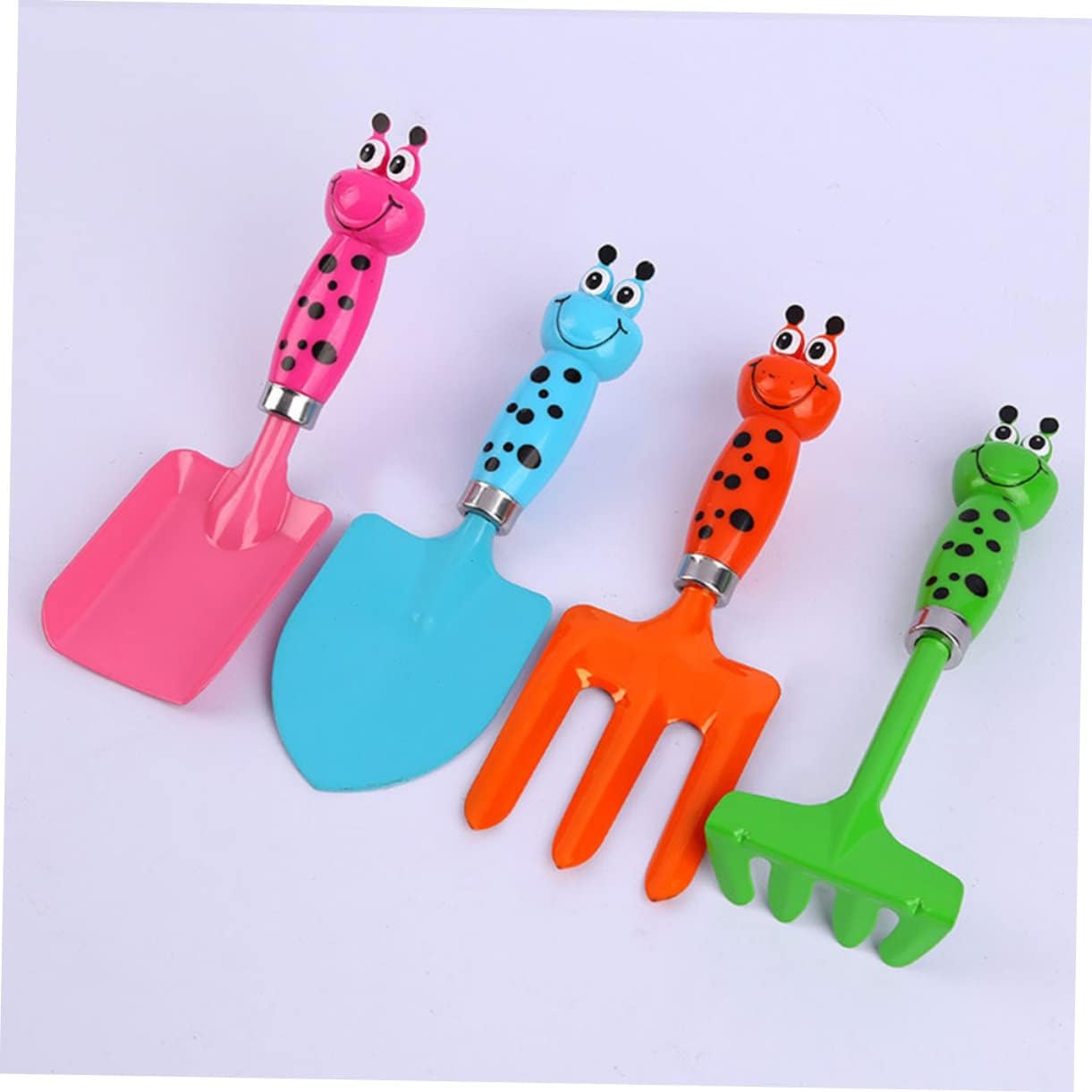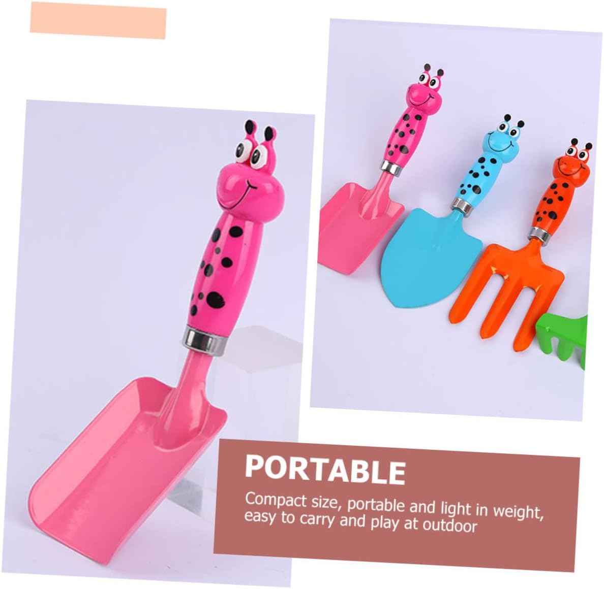 Attrezzi da giardinaggio dei cartoni animati: questi attrezzi da giardinaggio per bambini attirano l'interesse dei bambini per il giardinaggio e la natura. Giocattoli da esterno per bambini: puoi insegnare ai tuoi bambini il giardinaggio e farli divertire di più. Set per bambini: un'attività divertente per promuovere la comunicazione genitore-figlio e rendere più stretta la relazione. Rastrello per cartoni animati: realizzato con ferro e plastica di alta qualità, è molto pratico e . Strumenti per piantare: lucidati con cura, la superficie è liscia e non danneggerà il tuo bambino.