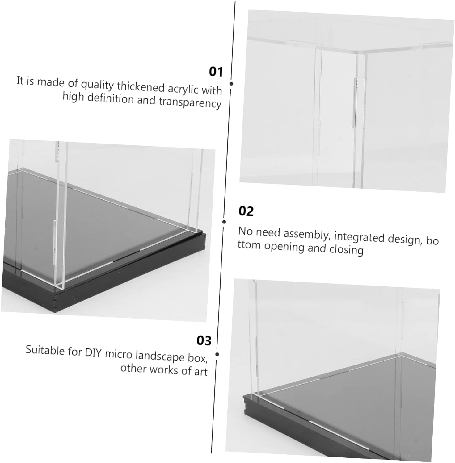 Vetrina per modelli fatta a mano: molto adatta per personaggi, bambole, statue, modelli 3d, campioni di prodotti, oggetti da collezione, vetrina per modelli in acrilico Vetrina: il design altamente trasparente offre un'esperienza di apprezzamento confortevole, vetrina in acrilico Vetrina in acrilico: perfetta per dare al tuo oggetto da collezione un aspetto elegante, creativo e chic, vetrina Copertura del : evita che il tuo venga collezionato e mantienilo come prima, vetrina espositiva Vetrina : facile da posizionare e da estrarre, molto comoda e semplice, chiara e unica, vetrina
