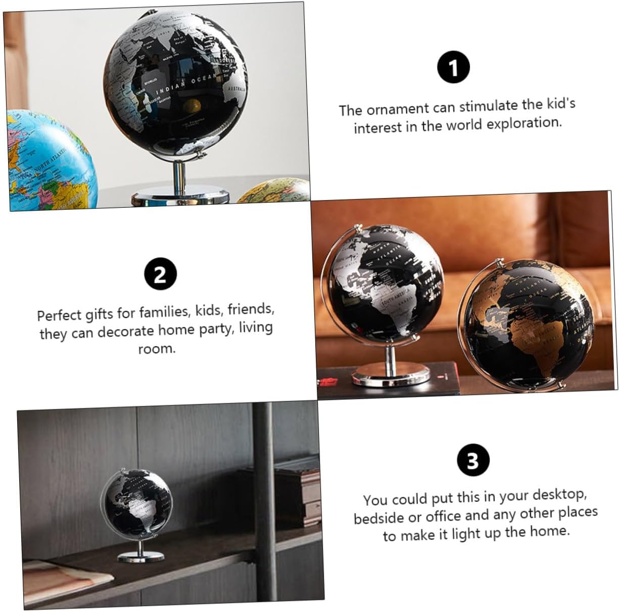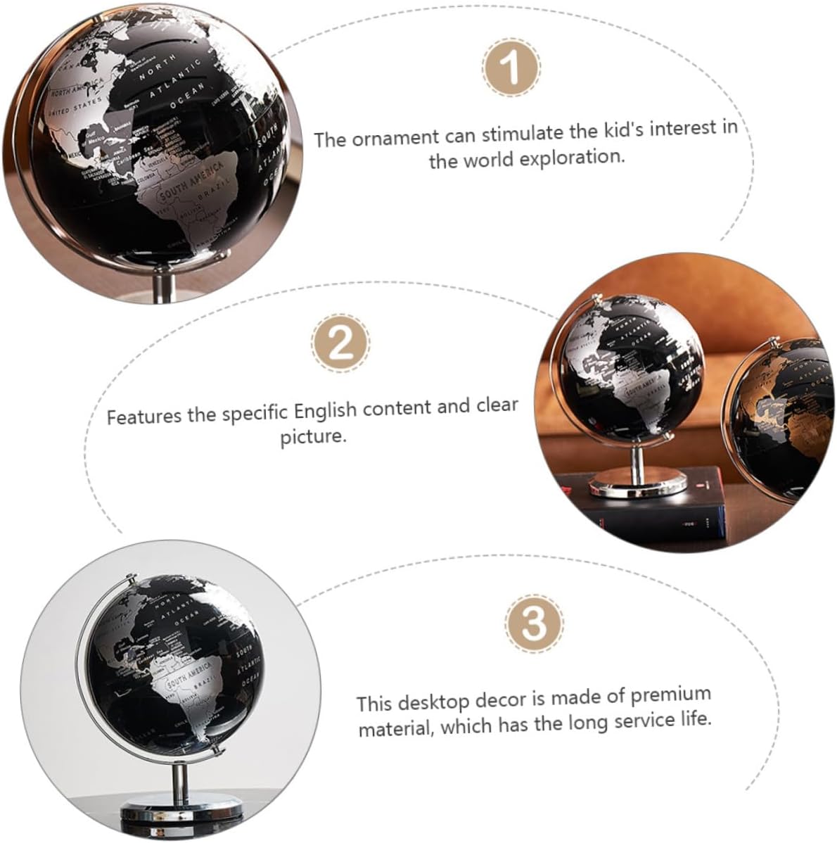 Ornamento: è dei tuoi. Decorazione del globo: piccolo mappamondo da tavolo con supporto Globo di plastica: l'ornamento del globo è fatto di , che è , e . Mappamondo da tavolo: il mappamondo è splendidamente , il testo è e la lavorazione è eccellente. Globo geografico: questo decoro adotta una base robusta che sostiene e bilancia tutto , impedendogli di ribaltarsi.