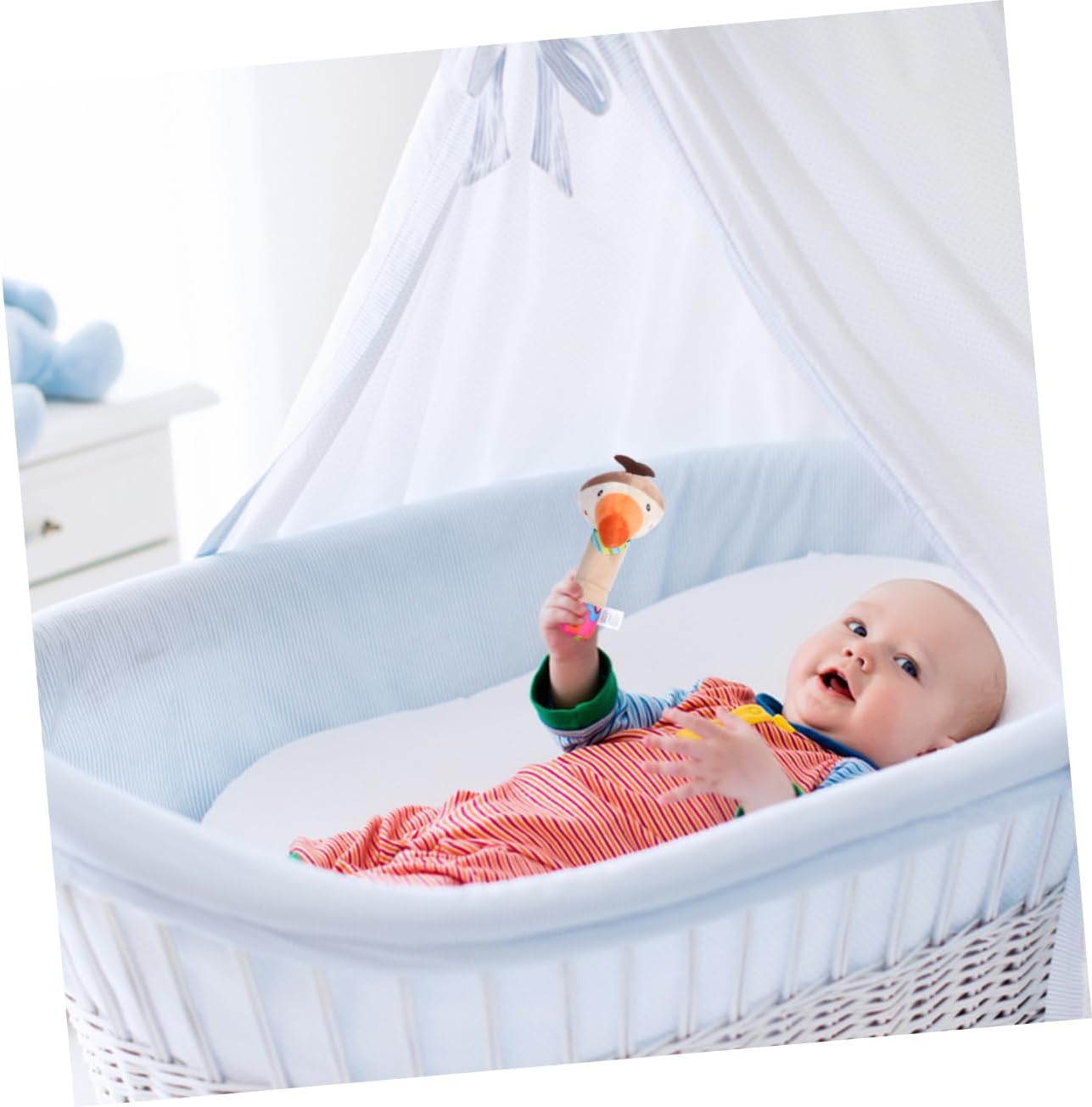 Sonagli per cuccioli: può essere un giocattolo educativo per aiutare lo sviluppo dei neonati. Sonagli da polso per bambini: utilizza super tessuti di cristallo ad alto peso, che non sbiadiscono né perdono , possono essere lavati e possono essere mangiati bambini. Giocattolo per l'addestramento del bambino: ricami raffinati, motivi realistici e anelli pendenti che possono essere appesi ovunque, facili da trasportare. Bambola di peluche: realizzata in materiale peluche, così il bambino sente a suo agio e ha una presa forte. Bastoncino per sonaglino: può emettere suoni per arricchire la percezione dei suoni esterni da del bambino.