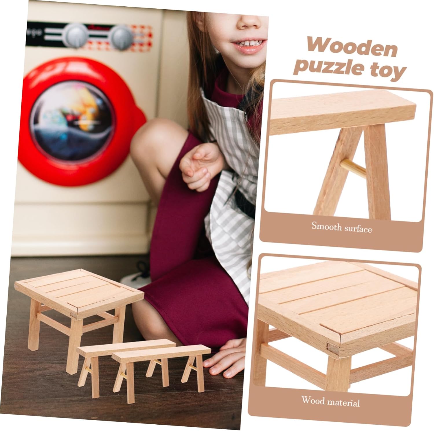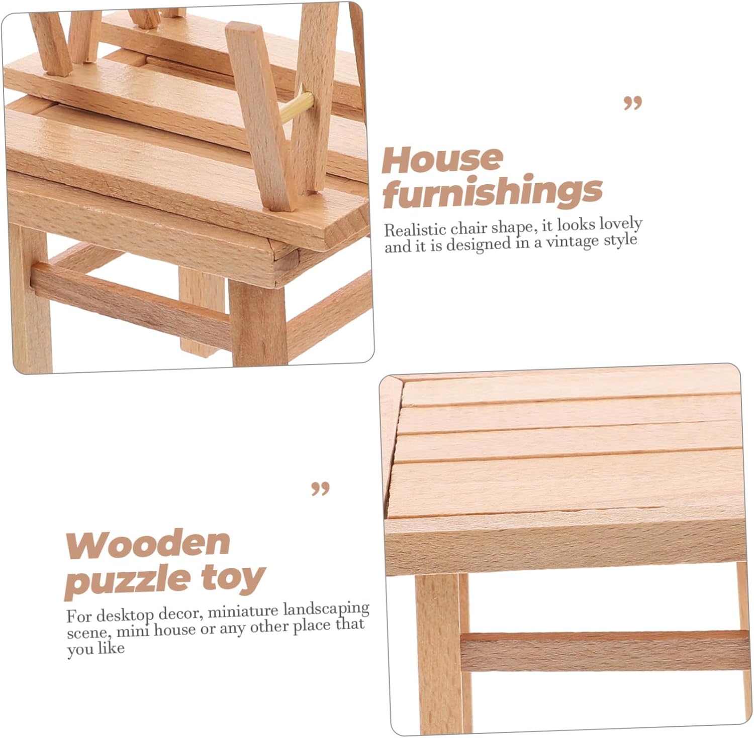 Il materiale è sicuro e leggero, resistente all'usura e pratico per un uso duraturo nel tempo. Può essere usato come supporto fotografico per scattare delle foto, rustiche, decorative e . Aiuta a coltivare le tue abilità in molti aspetti, giocattolo assemblato in legno molto pratico e divertente. Nessun attrezzo richiesto e semplice assemblaggio, facile da usare. L'effetto finito sarà distintivo e attraente. Caratteristico e squisito con design non verniciato. Semplice e nel design, morbido nelle linee.