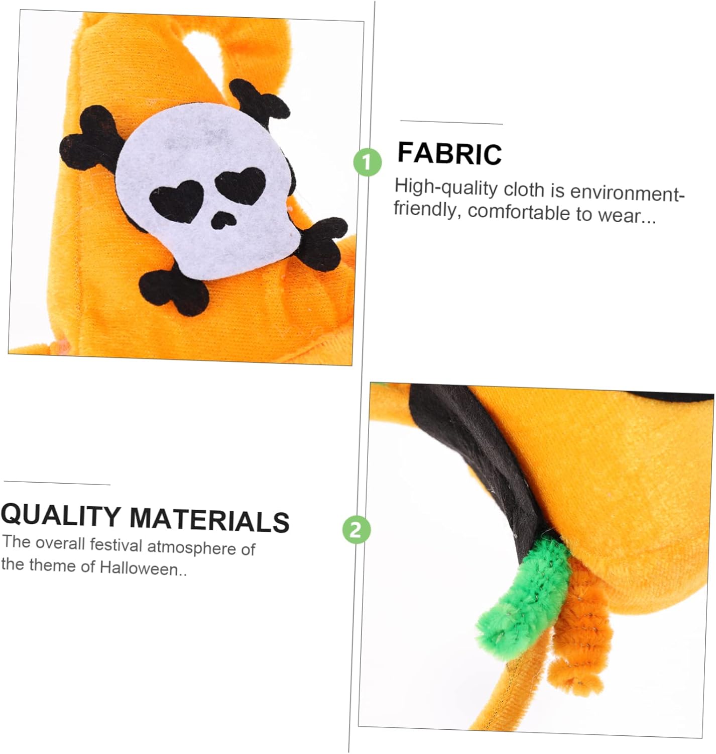 La confezione include 2 x fasce per capelli di Halloween Caratteristiche - Colore: Arancione Copricapo cosplay - Materiale: Copricapo per feste in tessuto - Dimensioni: Circa 22,00x13,00x1,50 cm/8,65x5,11x0 Copricapo per feste di Halloween. - Prendi questi accessori per creare una festa di Halloween memorabile con le tue famiglie e i tuoi amici con fasce per capelli a forma di cappello di zucca. -2 pezzi nel set, puoi condividere le fasce di Halloween con i tuoi amici e familiari. - Queste fasce sono realizzate in materiale di alta qualità, che è e può essere utilizzato per decorazioni per capelli per feste di lunga durata. Gli elementi classici di Halloween sulle decorazioni per capelli aggiungono un'atmosfera divertente e piacevole ad Halloween e creano un look speciale per gli ornamenti per capelli di Halloween. - per feste di festival, feste in maschera, carnevale, ecc. fasce decorative. Descrizione Cerchi per capelli per feste Questo set di cerchi per capelli creativi a tema Halloween sono decorazioni per Halloween, cosplay e feste in costume. Adorabili copricapi, aggiungono una fantastica atmosfera festosa al tuo Halloween e creano effetti speciali e attraenti come preferisci. Cosplay di Halloween, goditi il tuo Halloween e lascia un bel ricordo di Halloween con questi accessori unici!